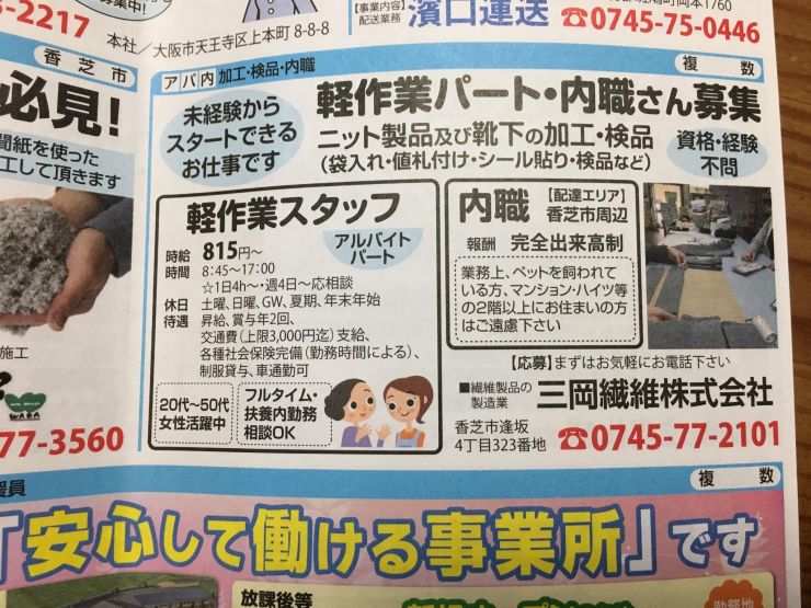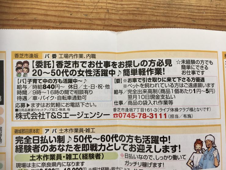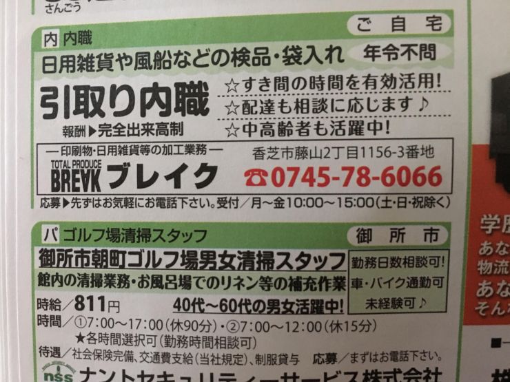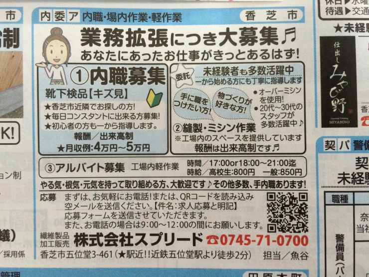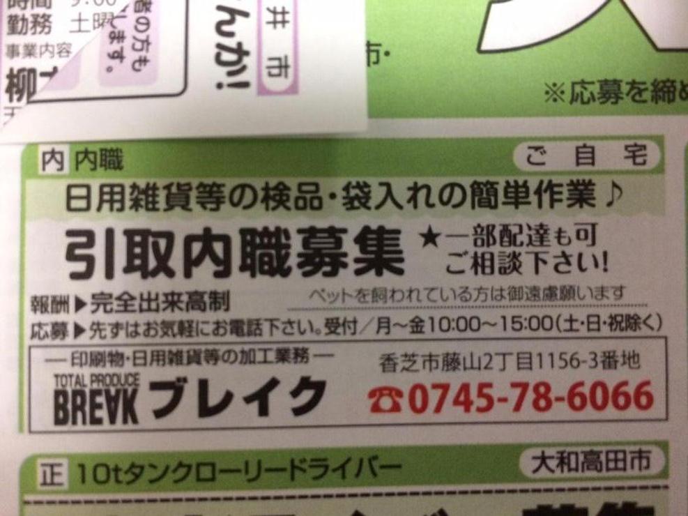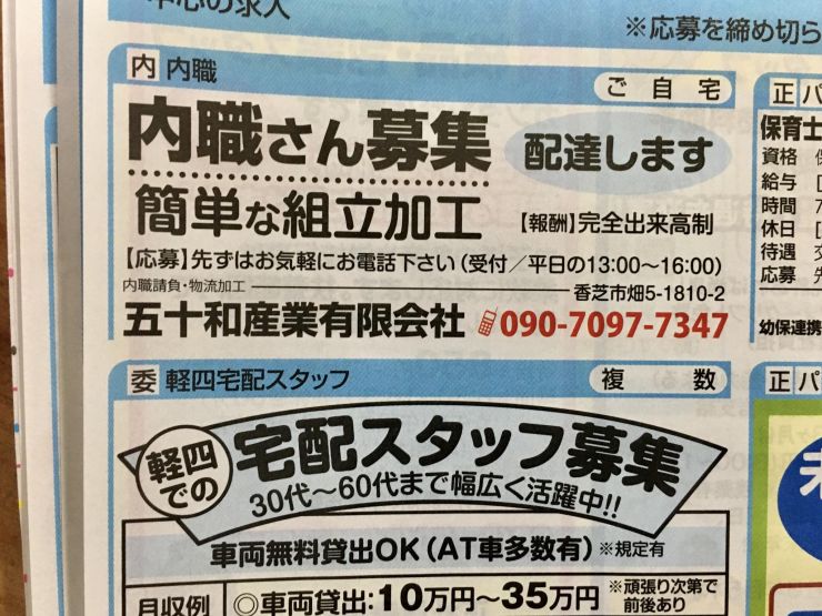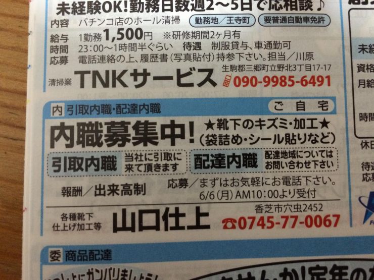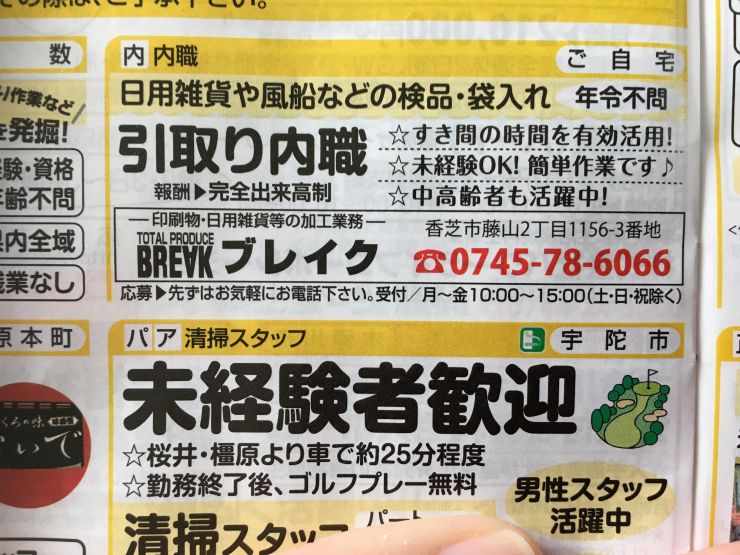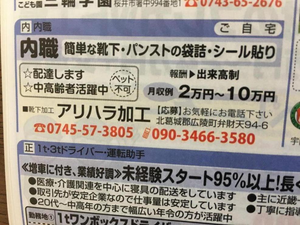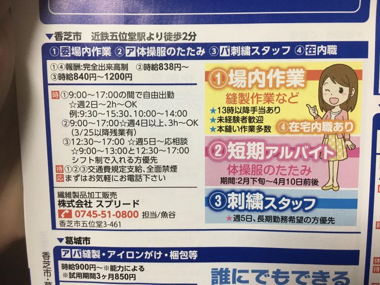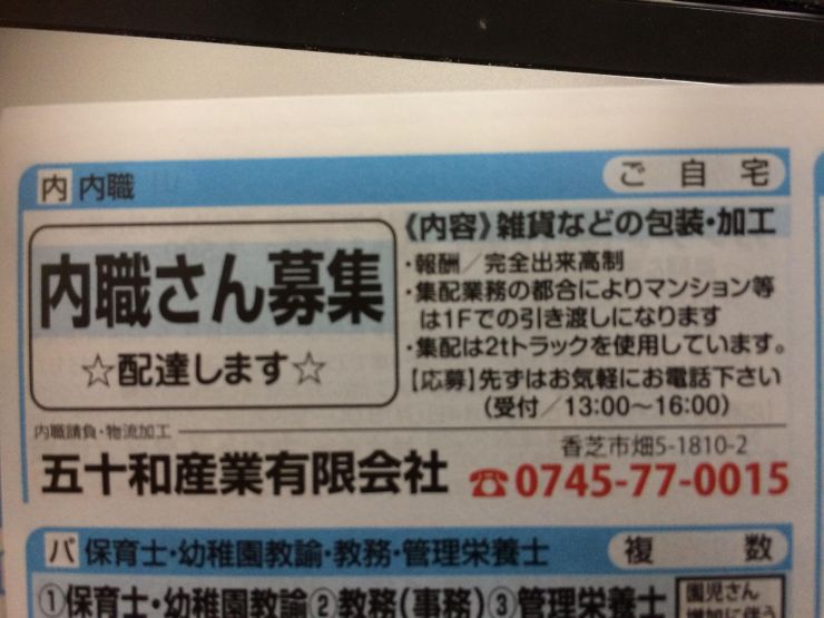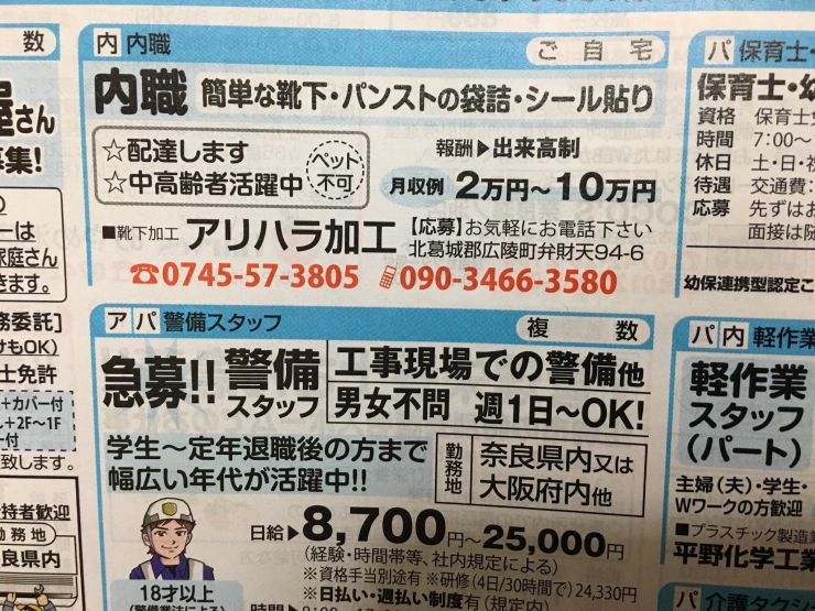 ユーザから投稿してもらった香芝市の内職チラシ情報を公開しています。