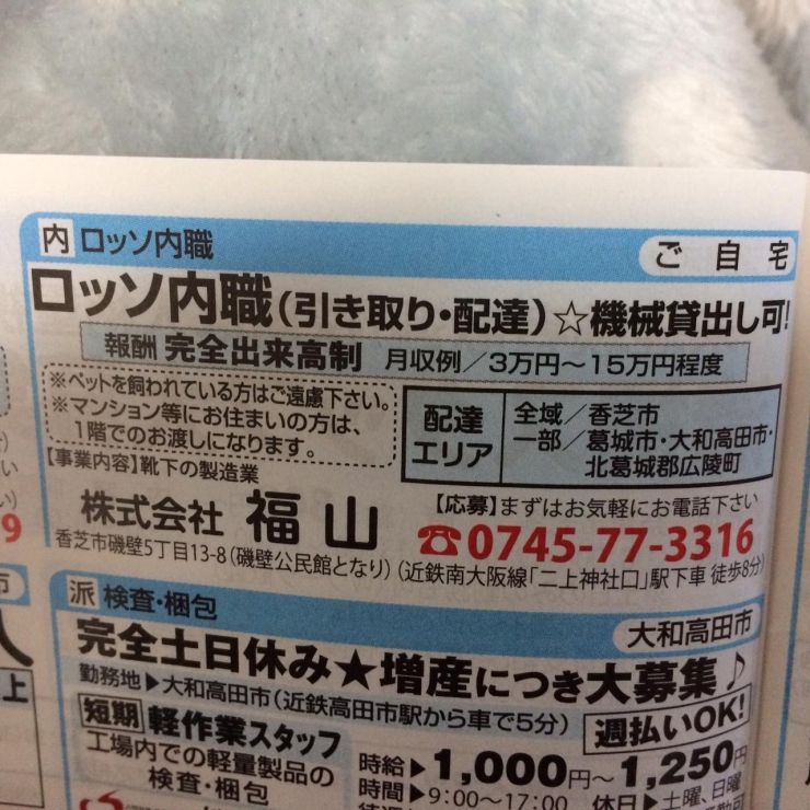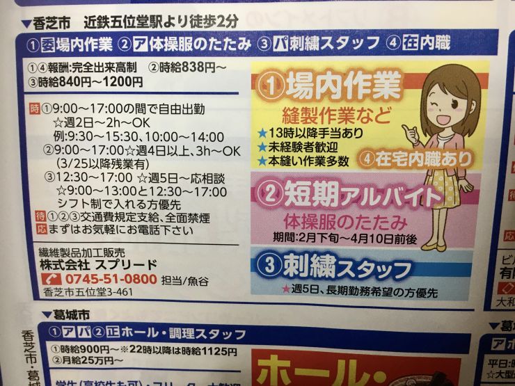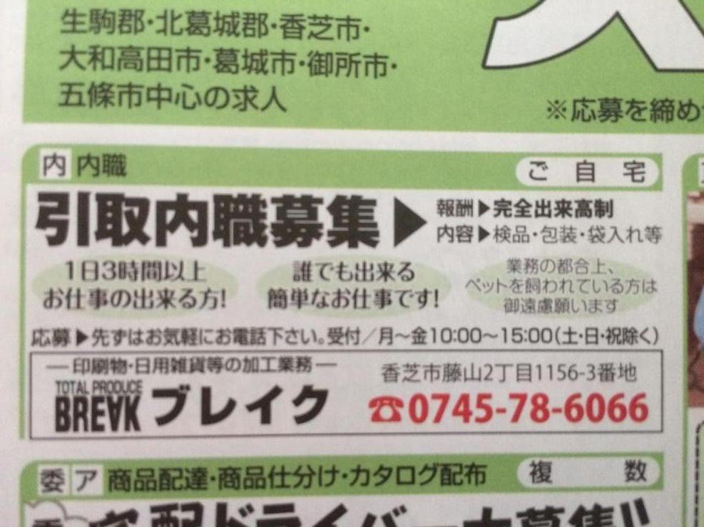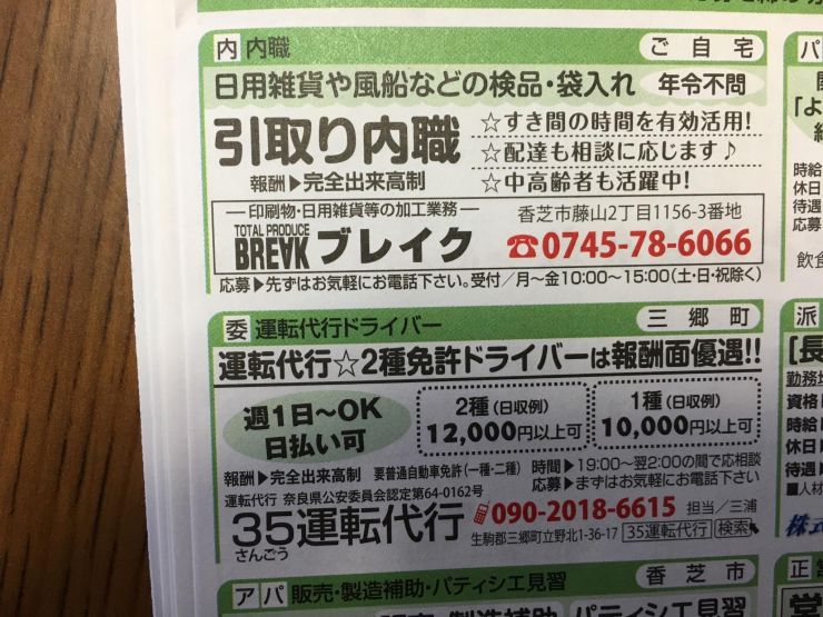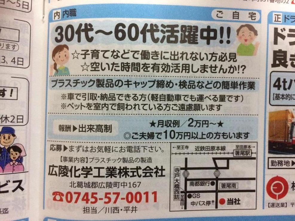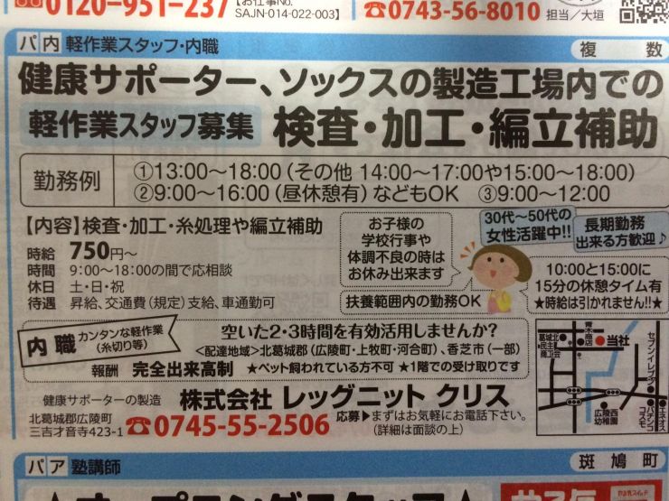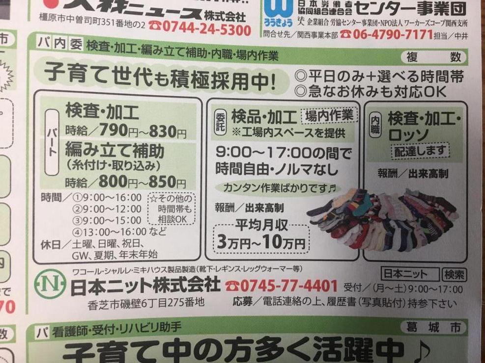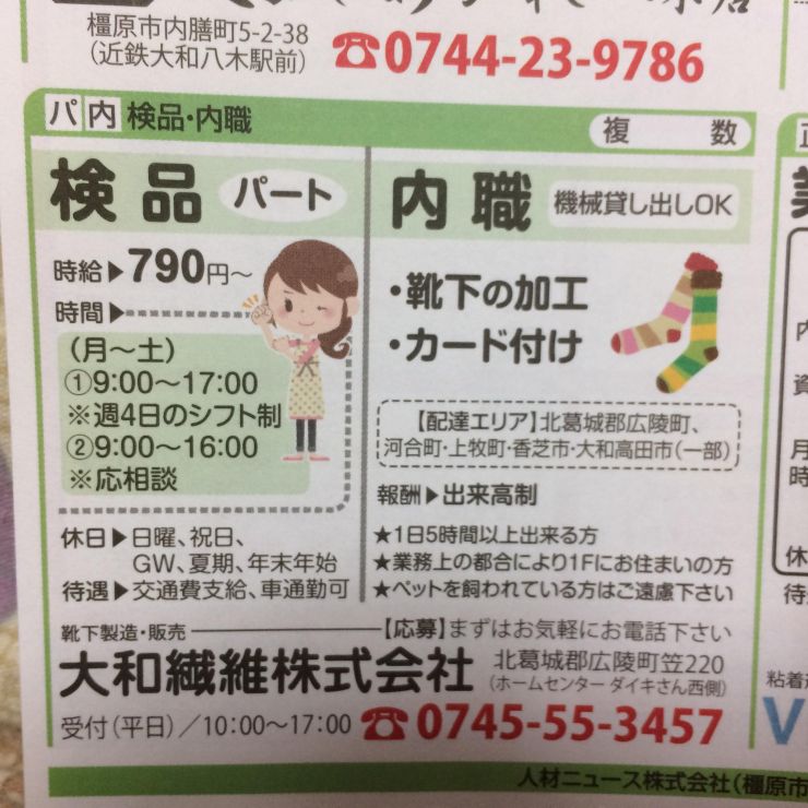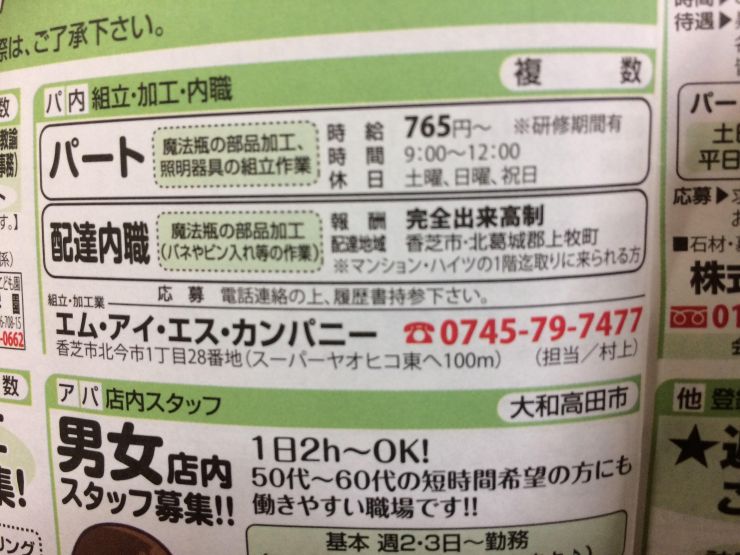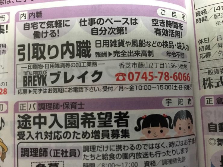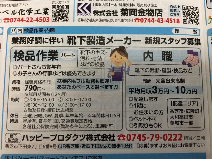 ユーザから投稿してもらった香芝市の内職チラシ情報を公開しています。