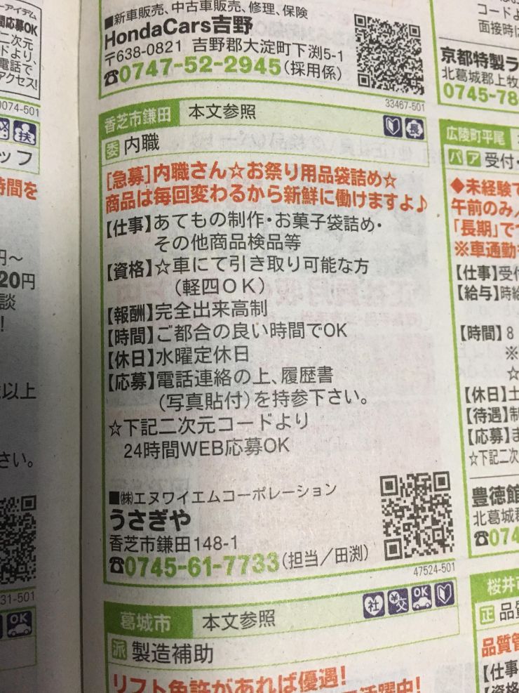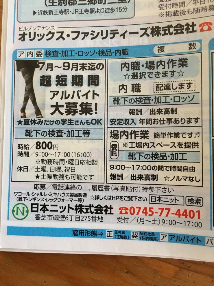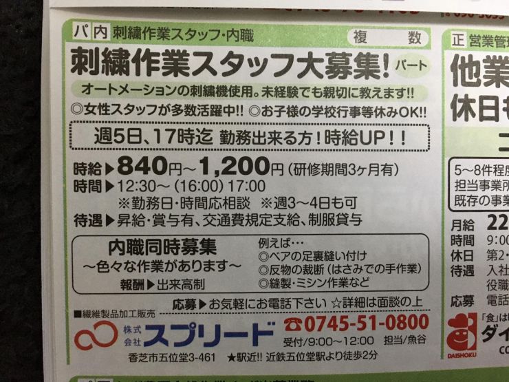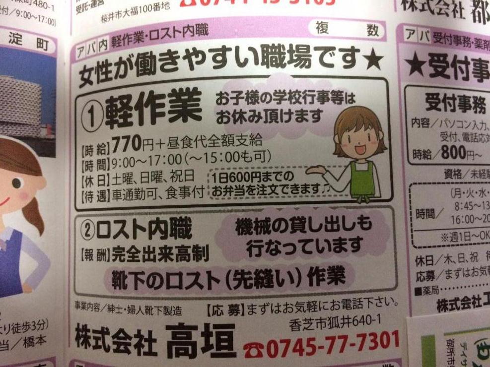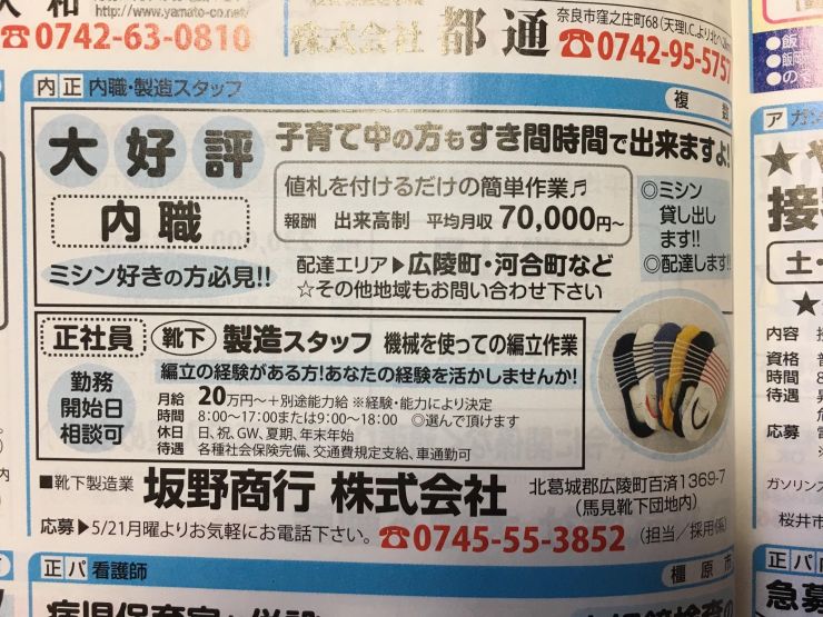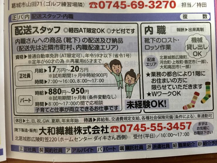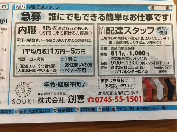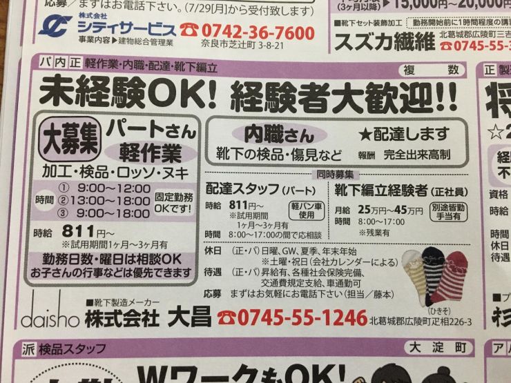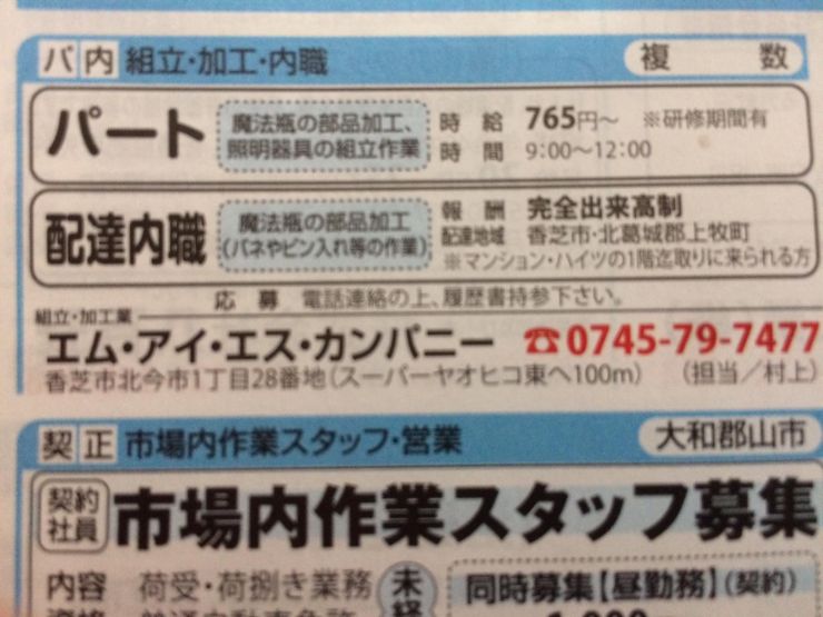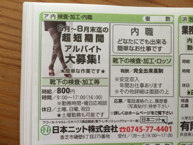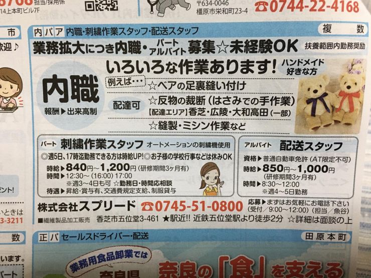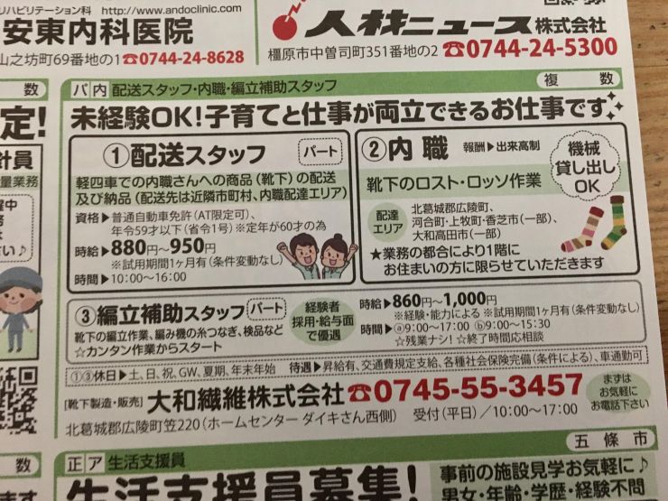 ユーザから投稿してもらった香芝市の内職チラシ情報を公開しています。