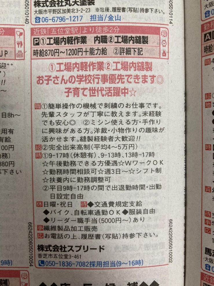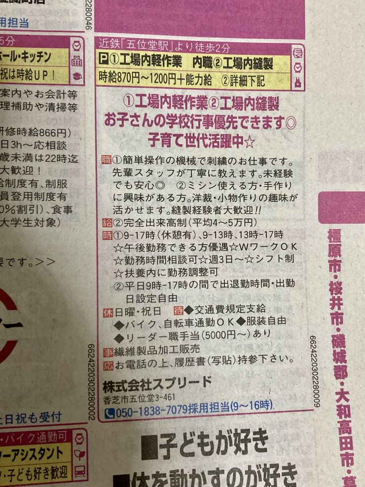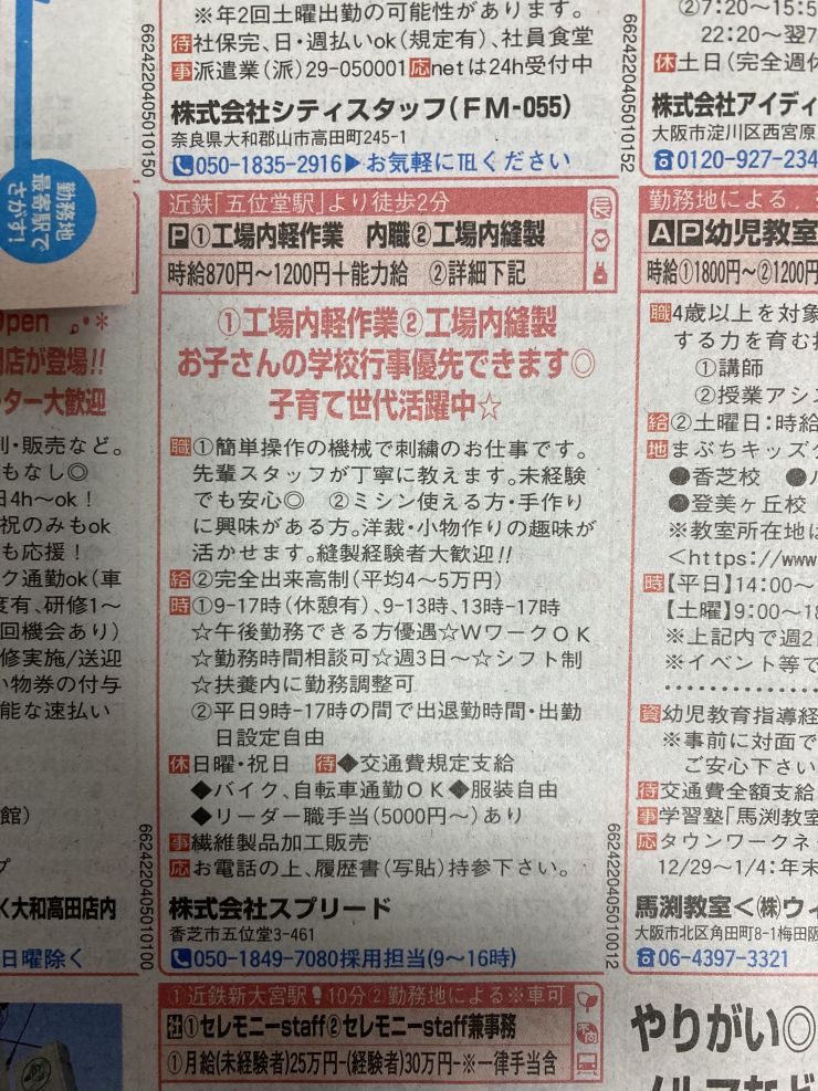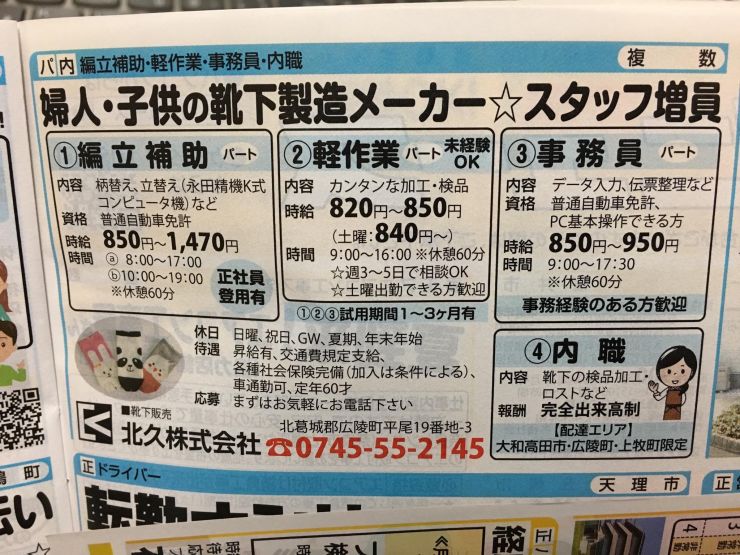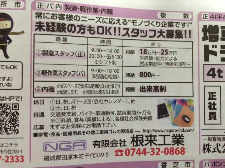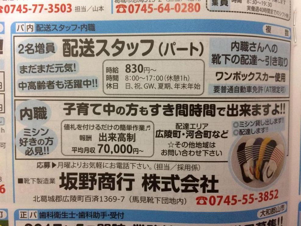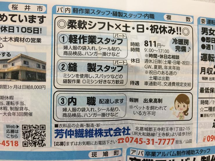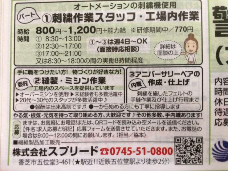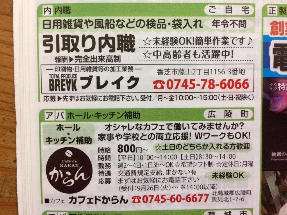 ユーザから投稿してもらった香芝市の内職チラシ情報を公開しています。