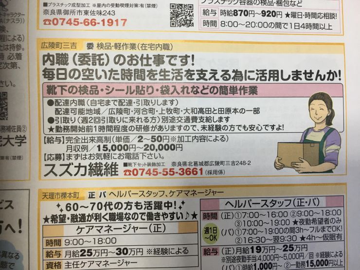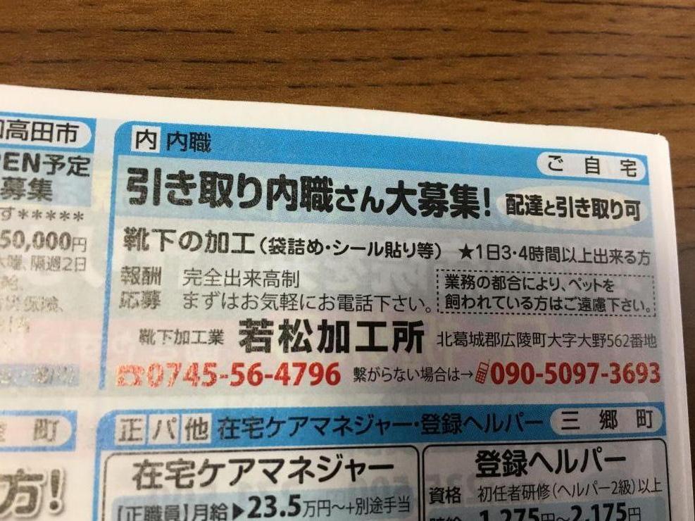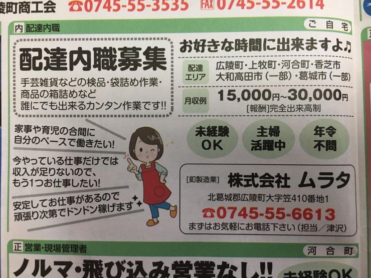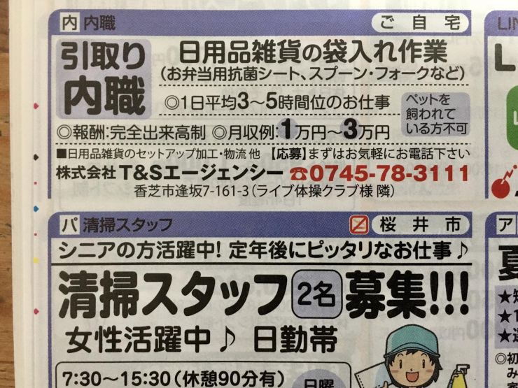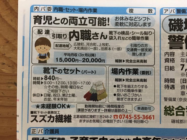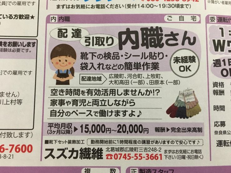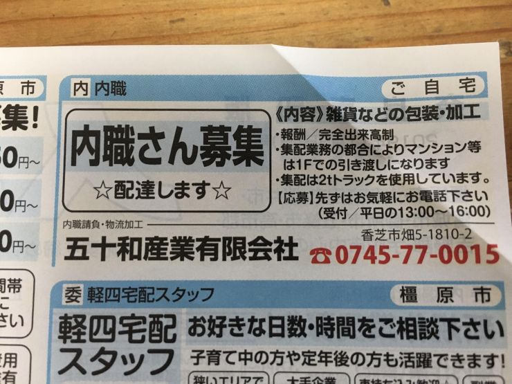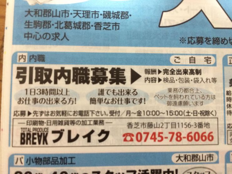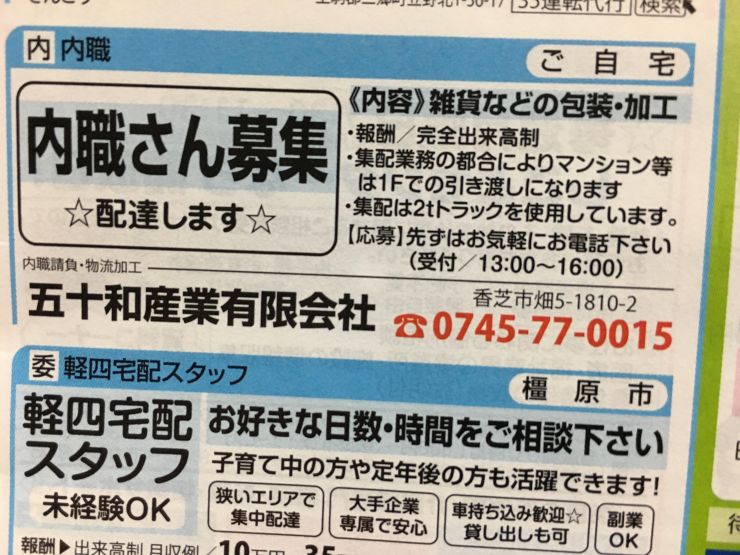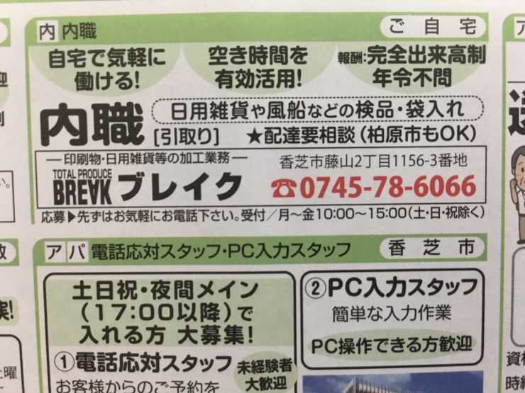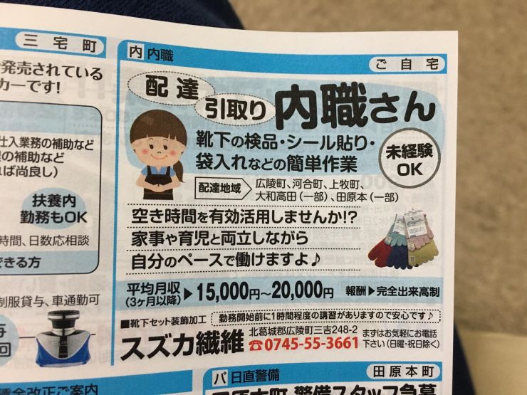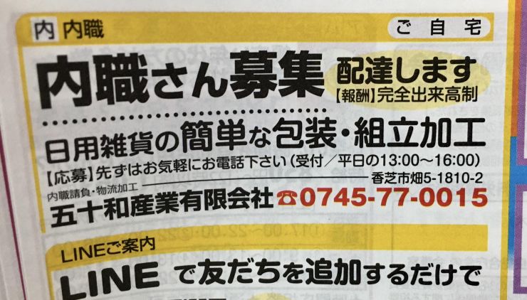 香芝市の内職チラシ