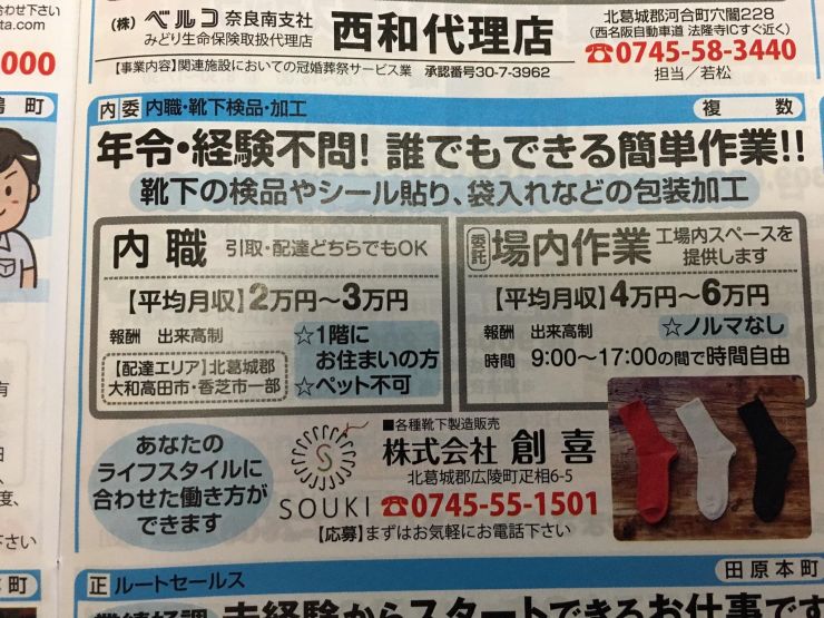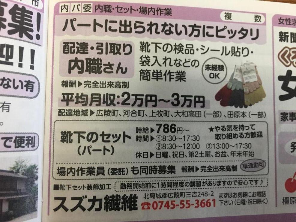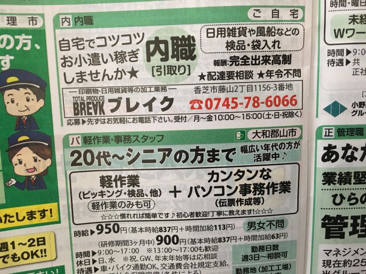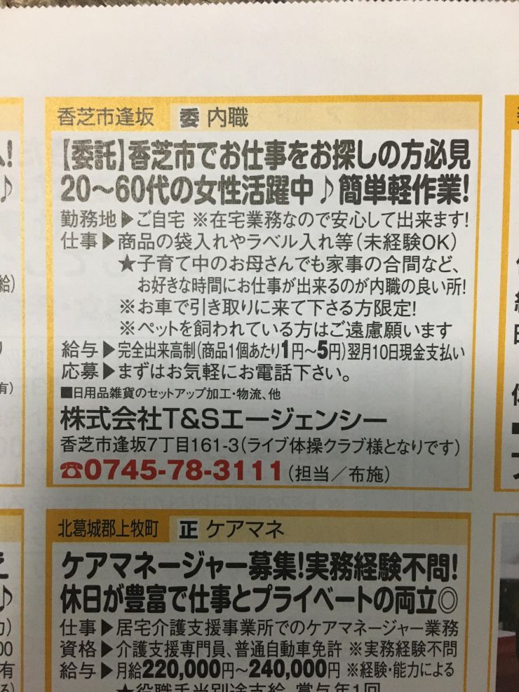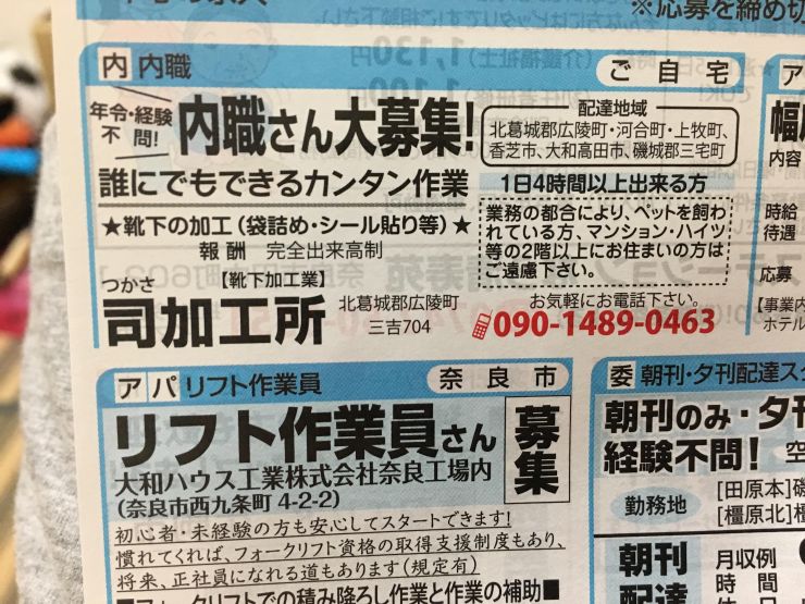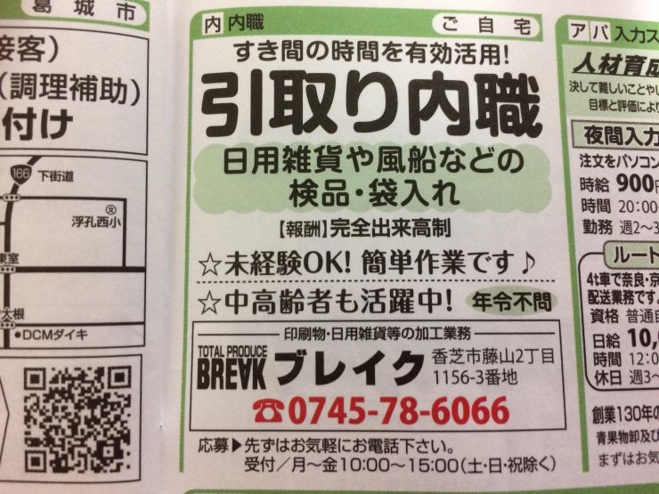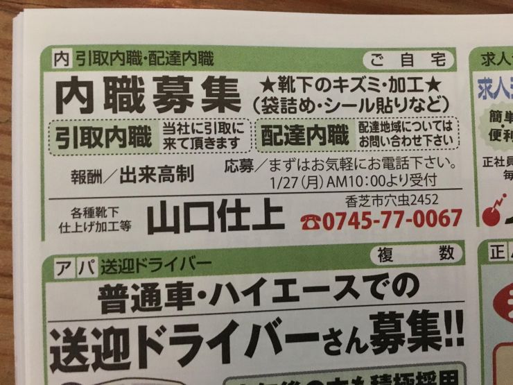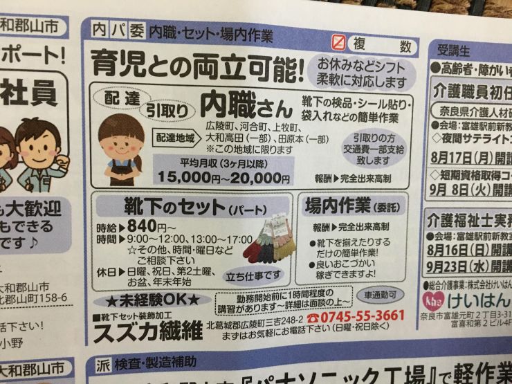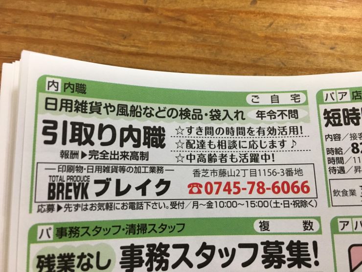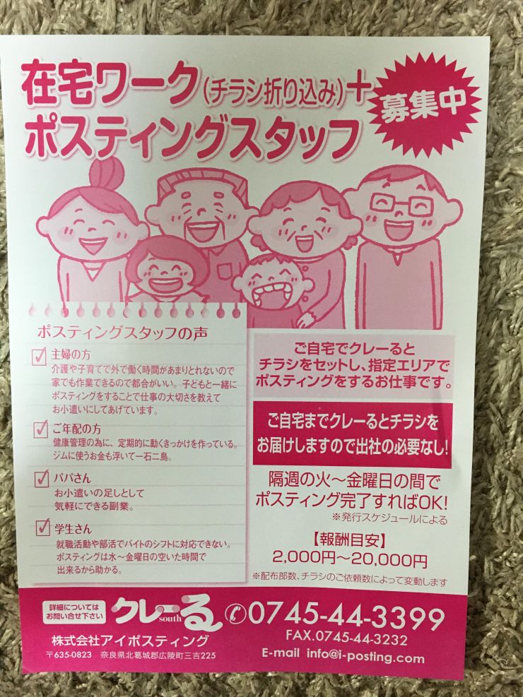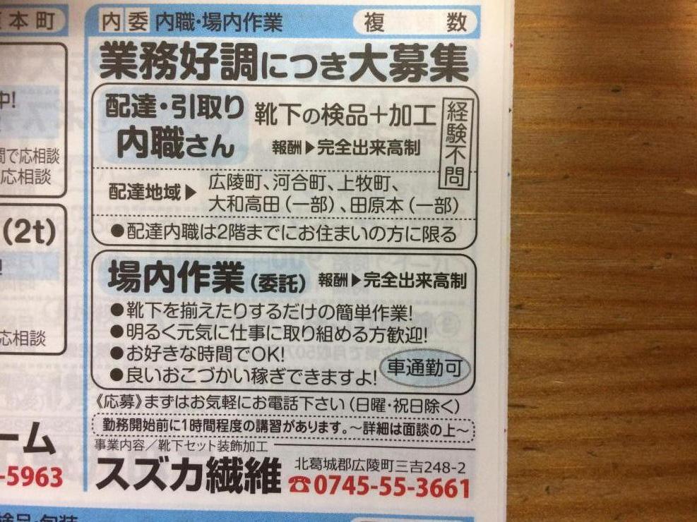 香芝市の内職チラシ