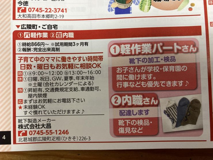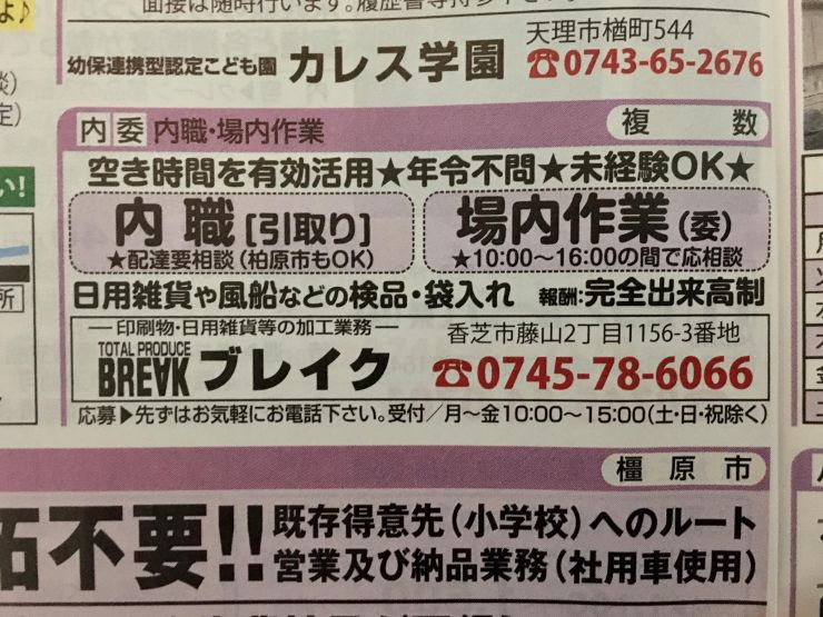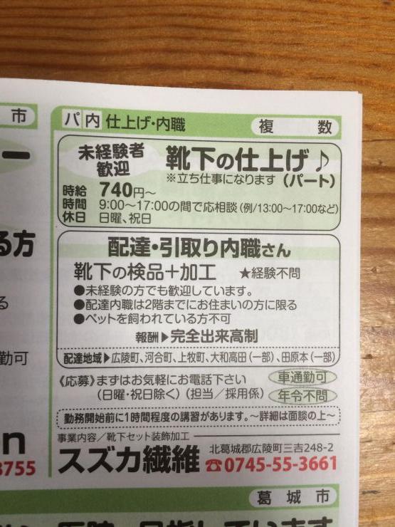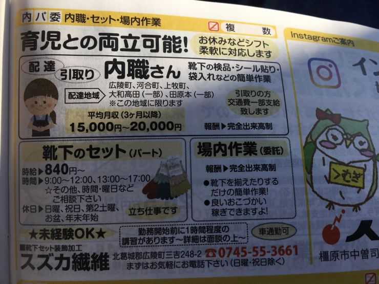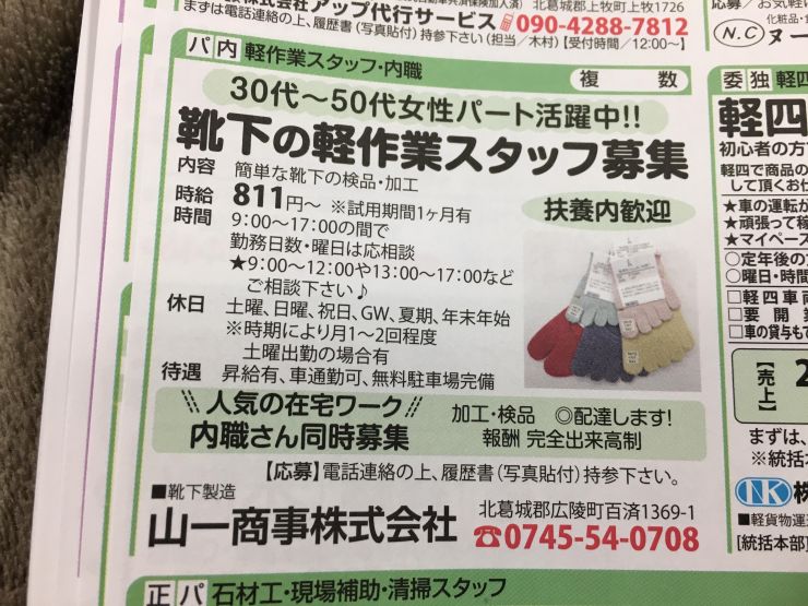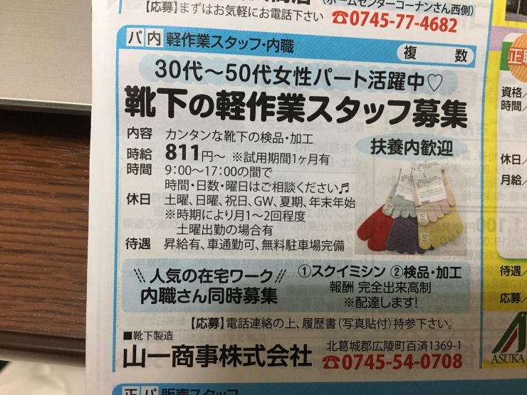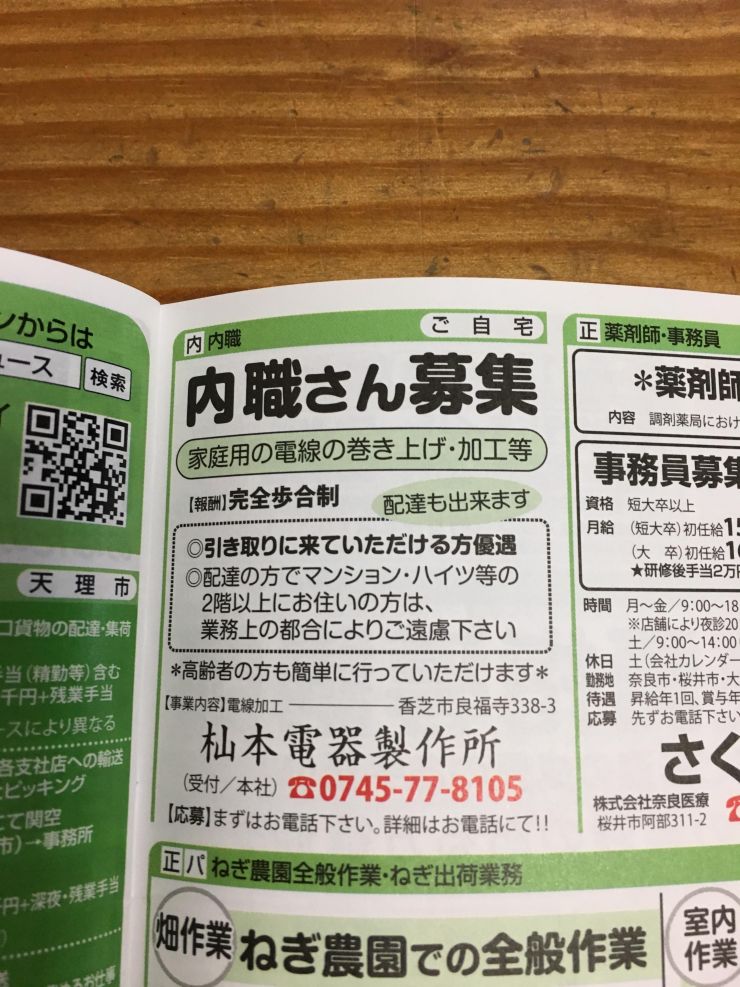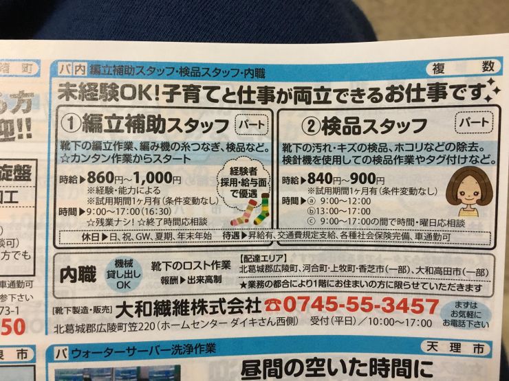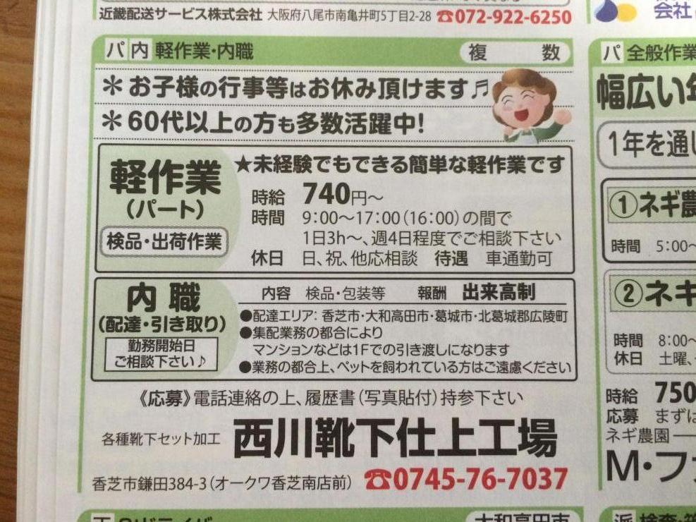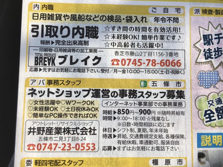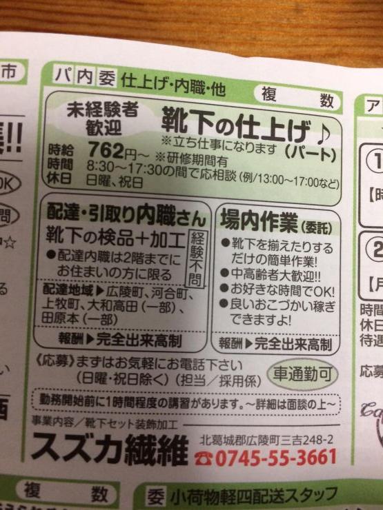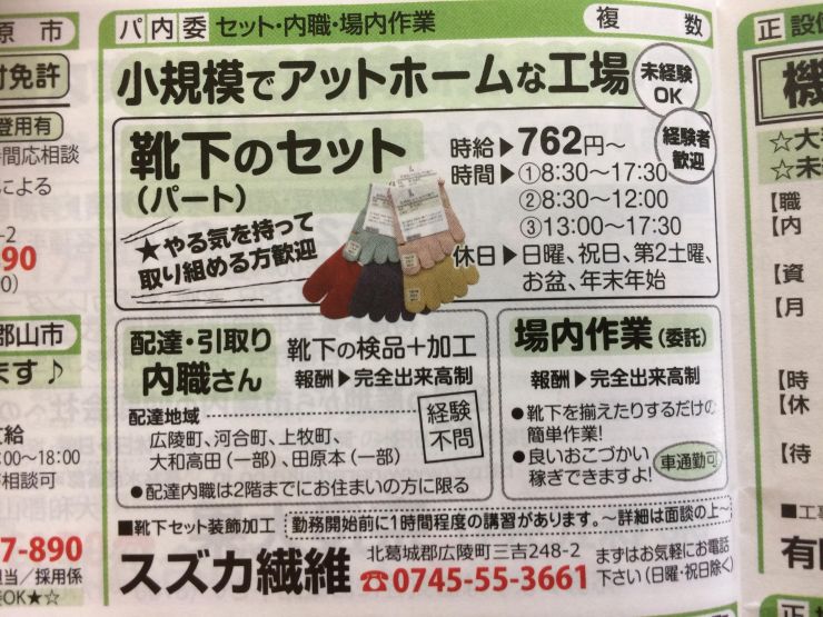香芝市の内職チラシ