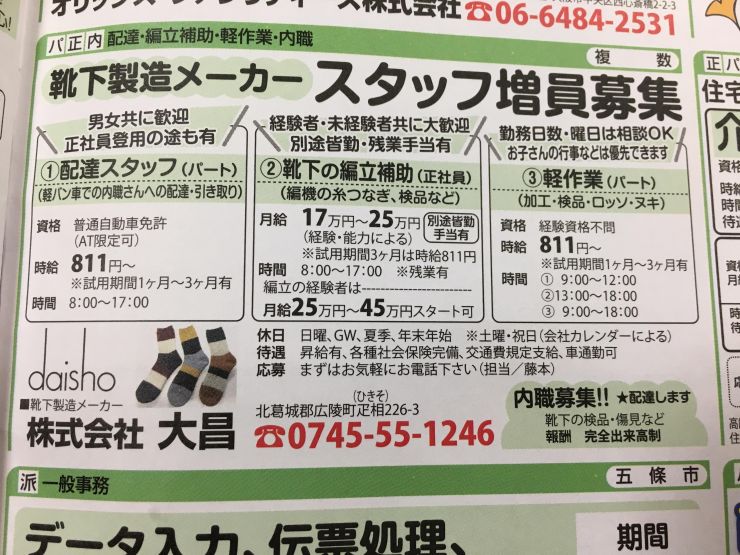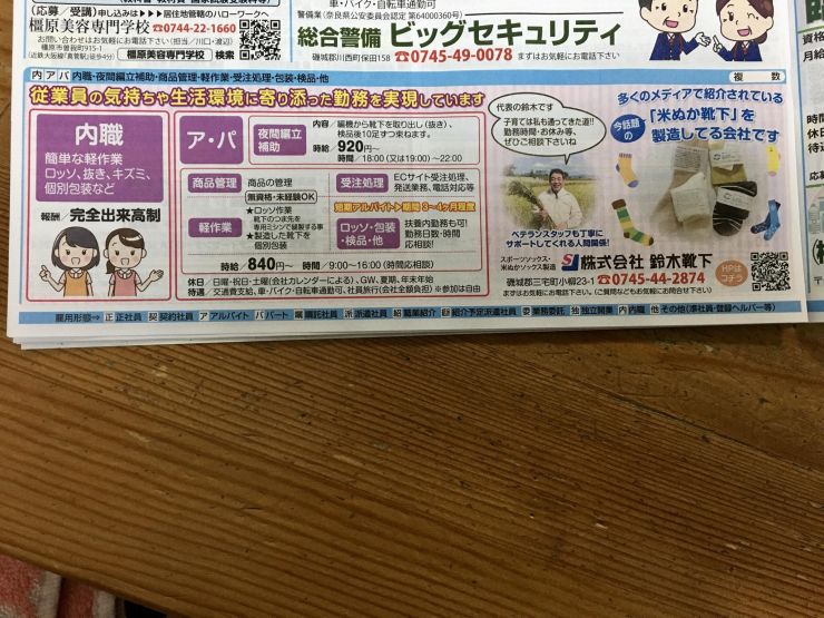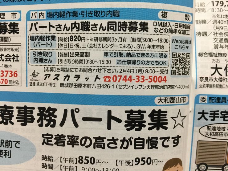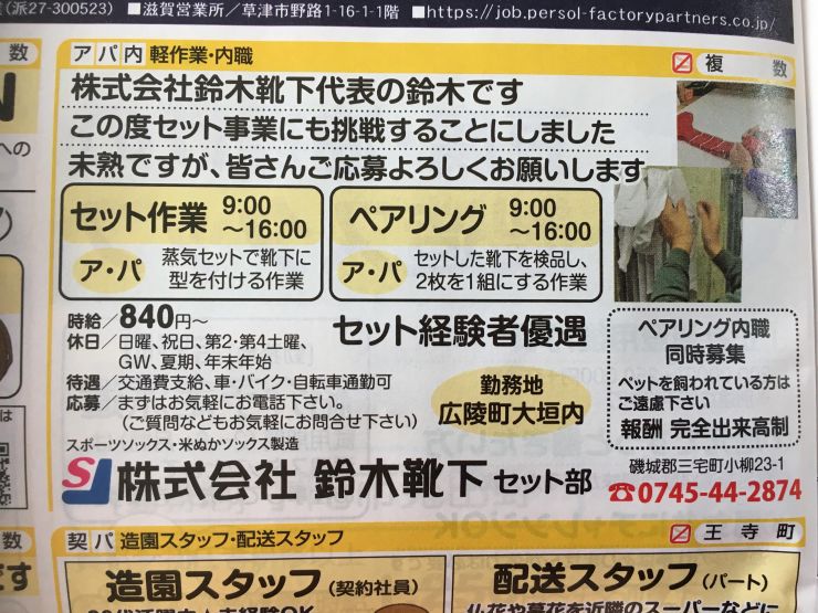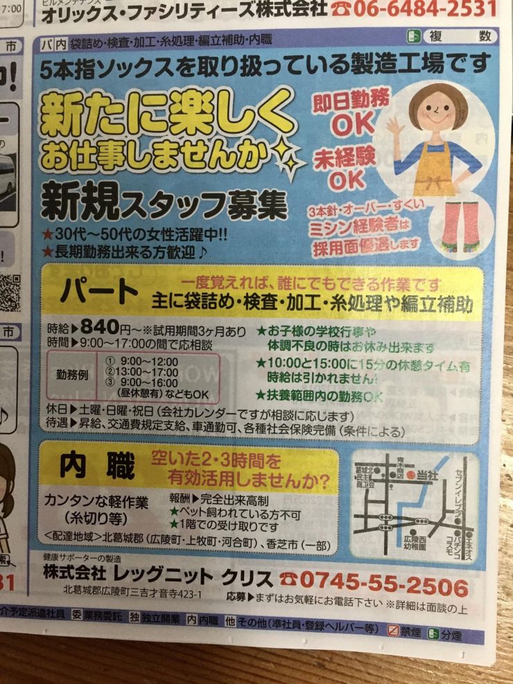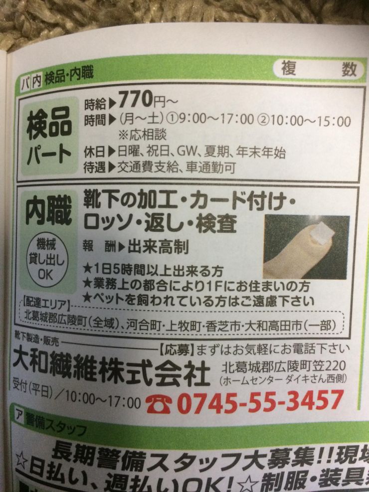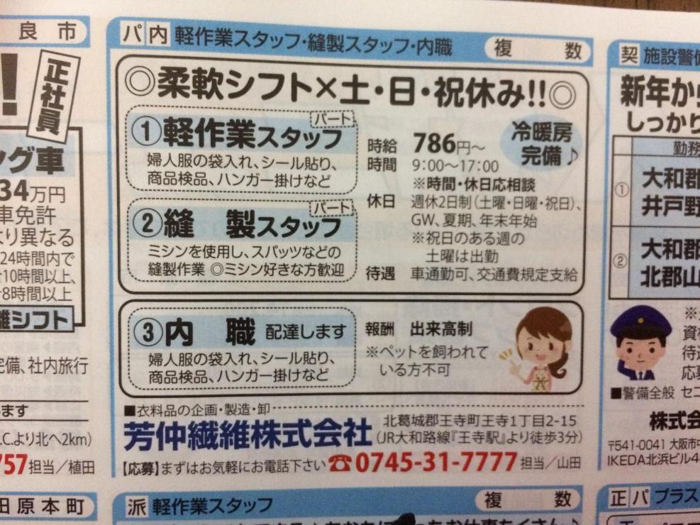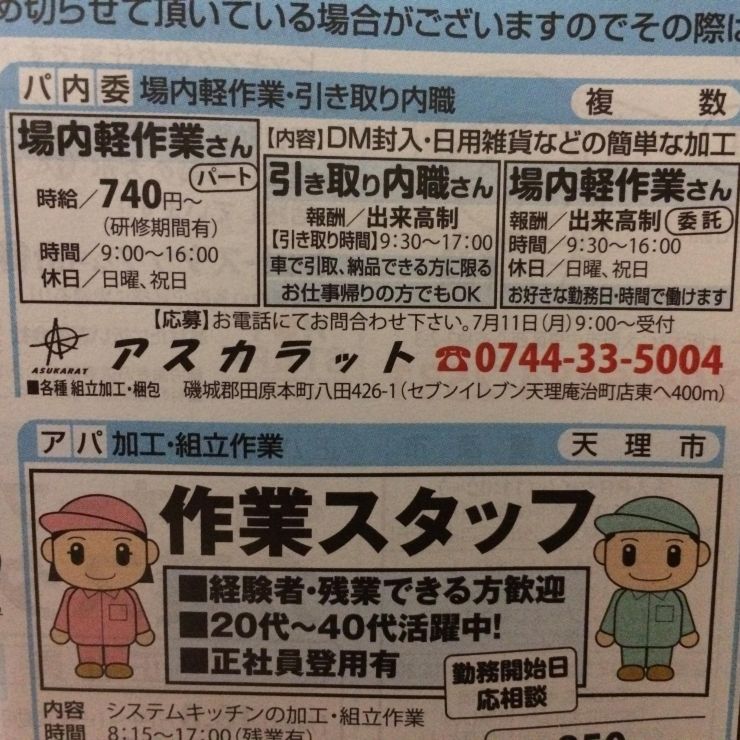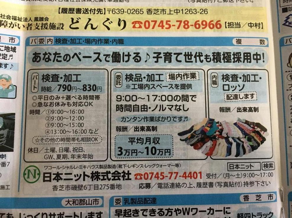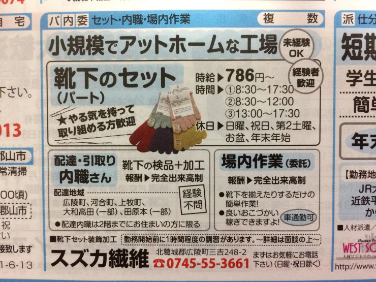 香芝市の内職チラシ