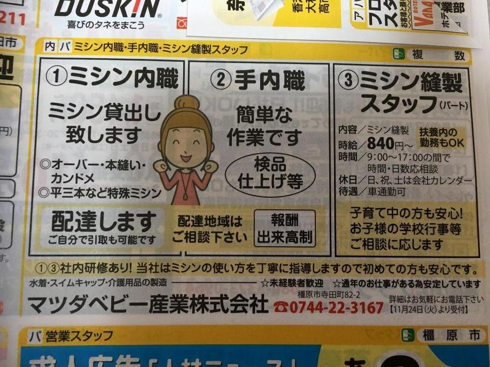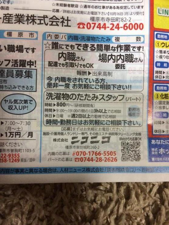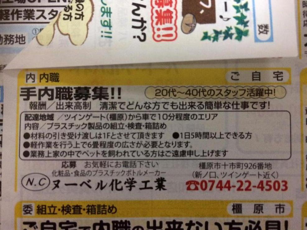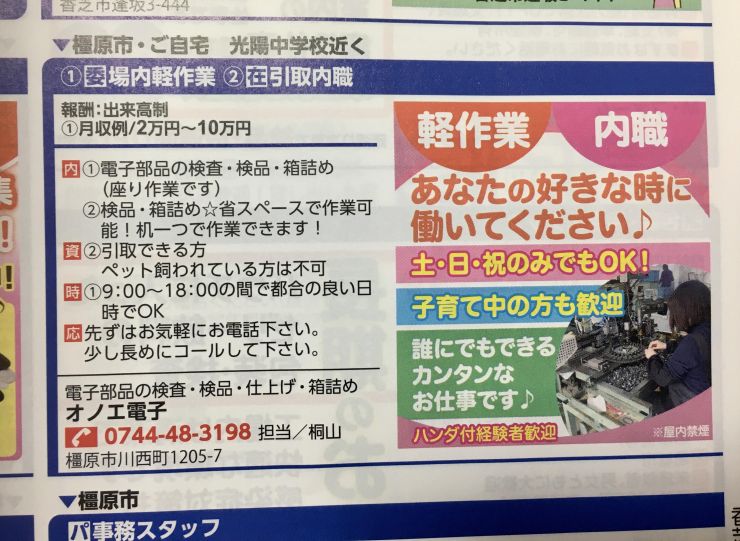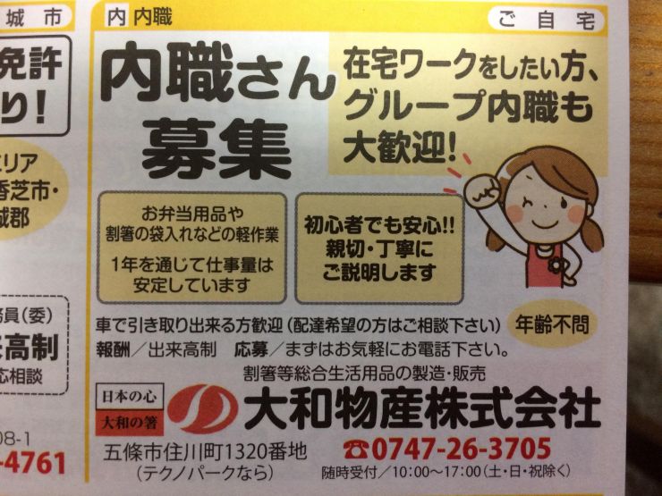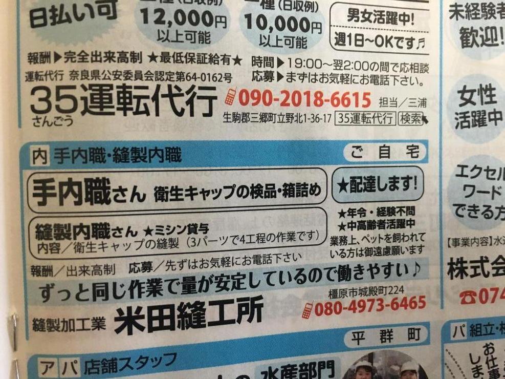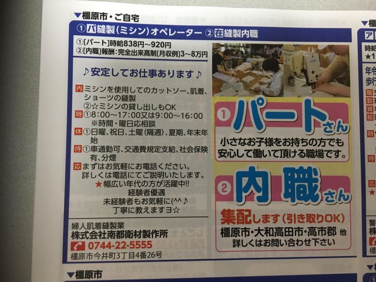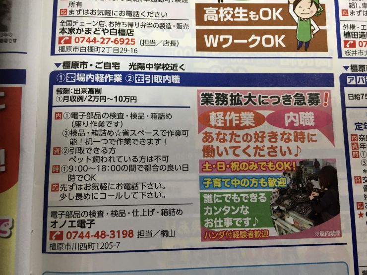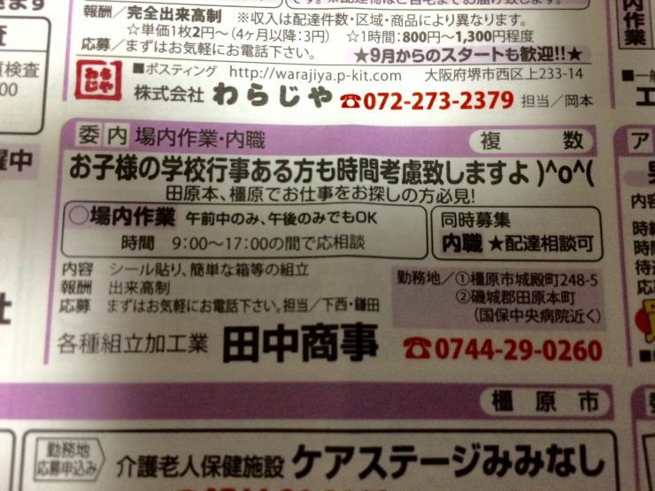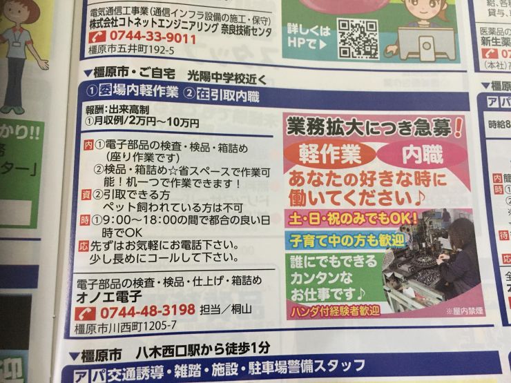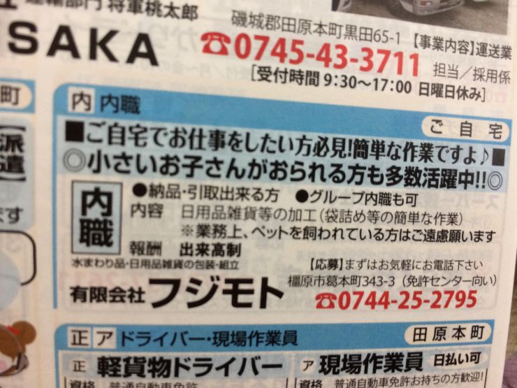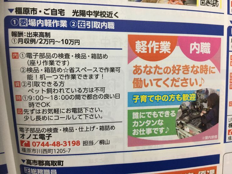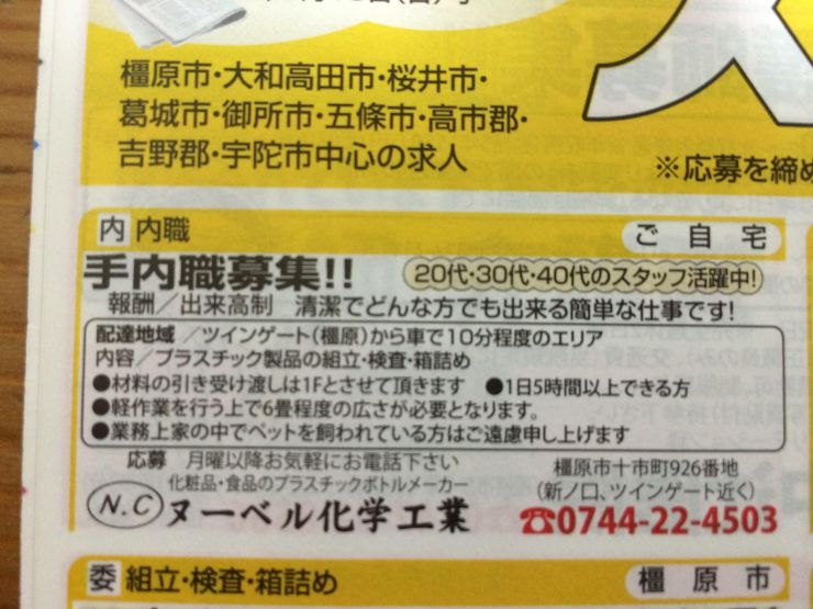 ユーザから投稿してもらった橿原市の内職チラシ情報を公開しています。