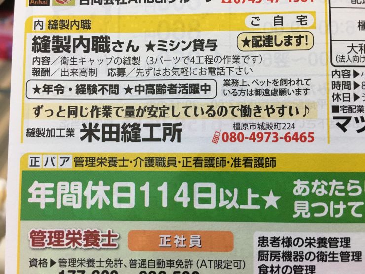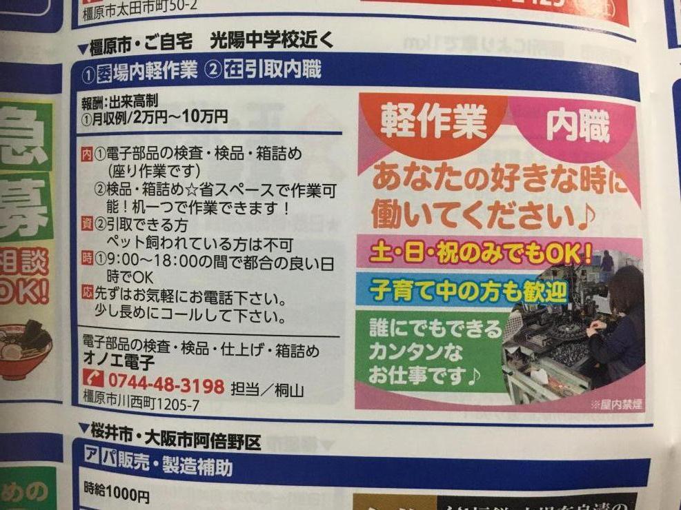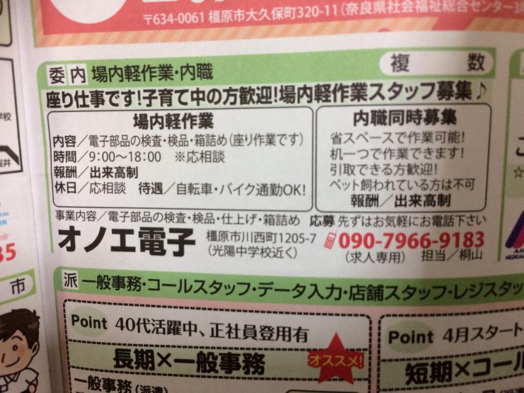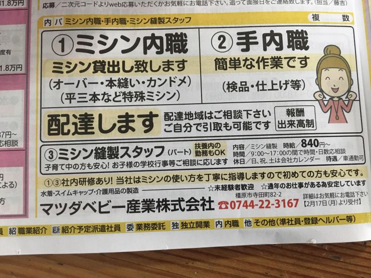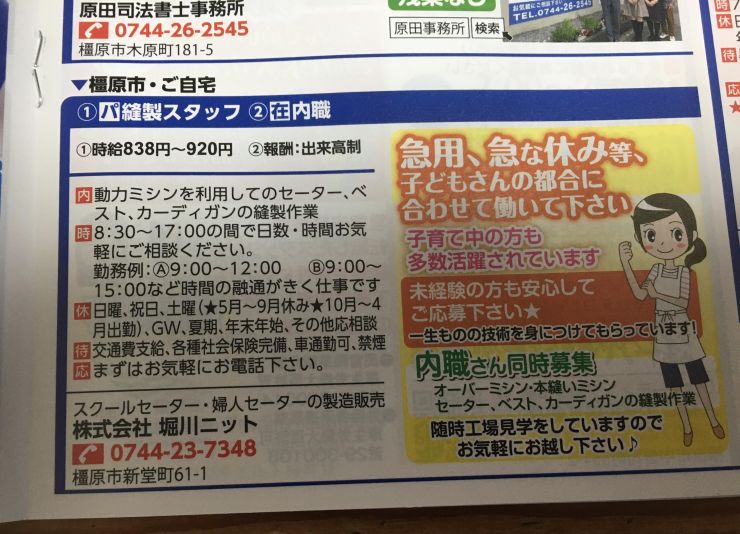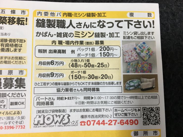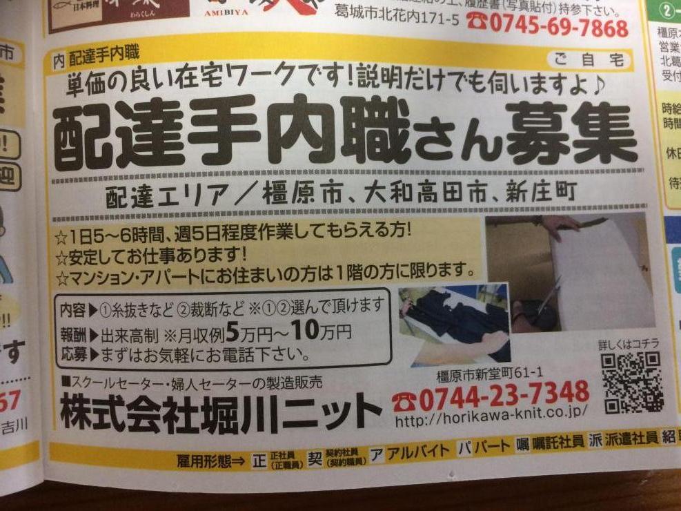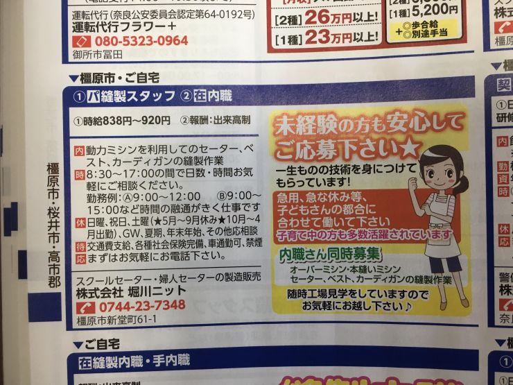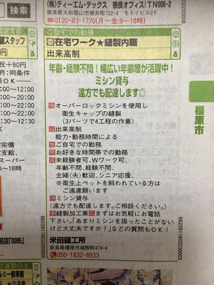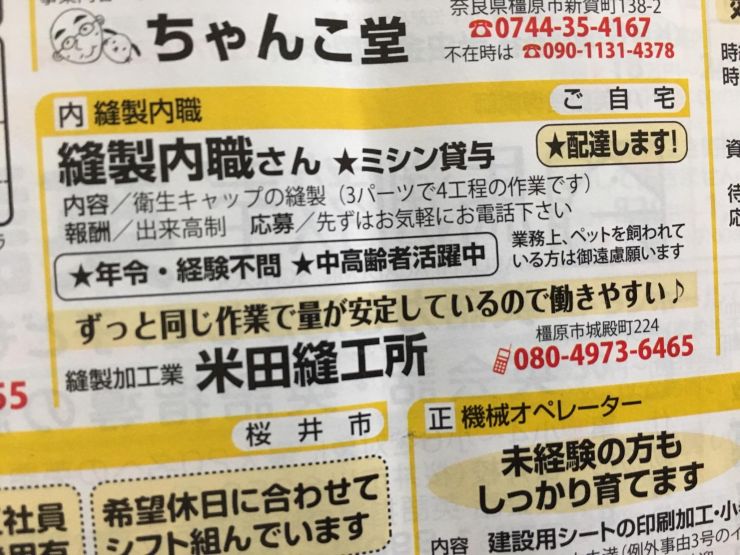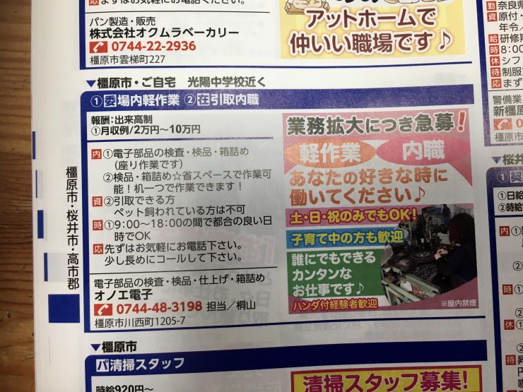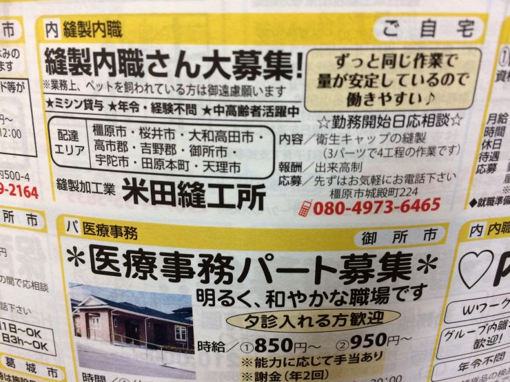 ユーザから投稿してもらった橿原市の内職チラシ情報を公開しています。