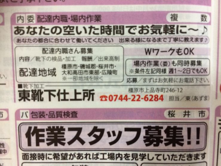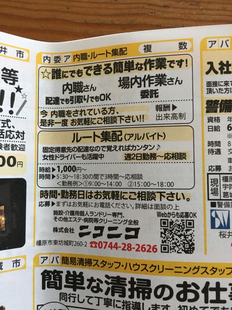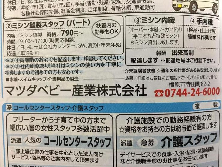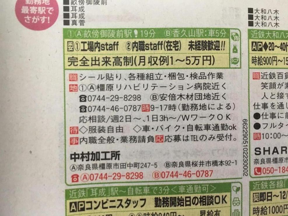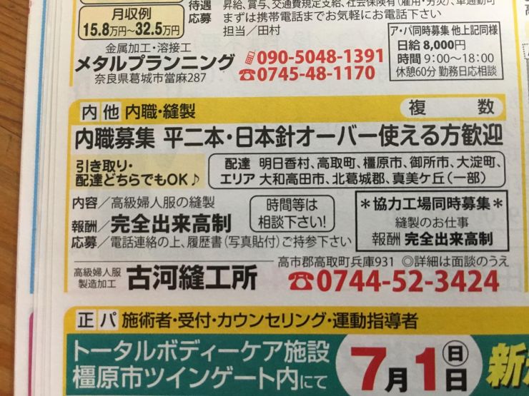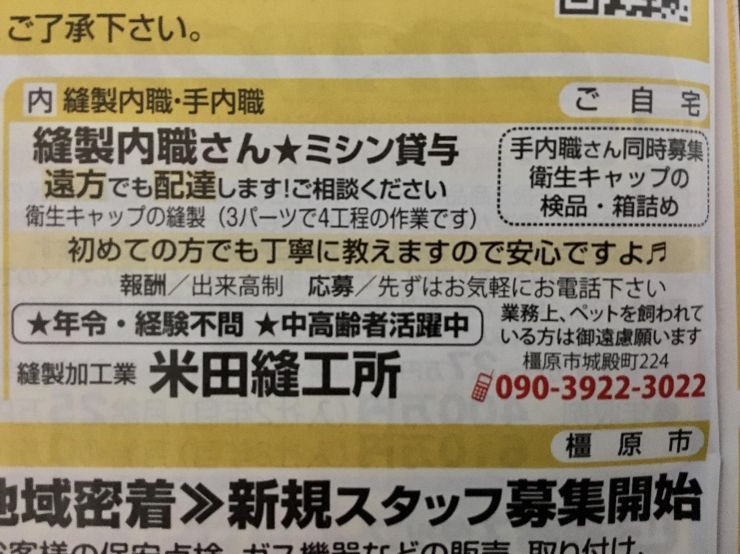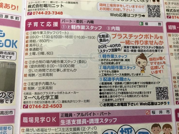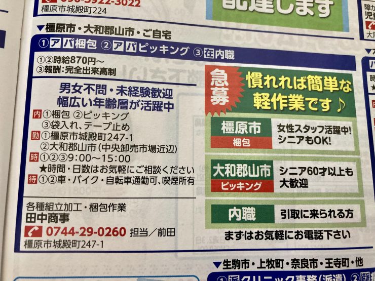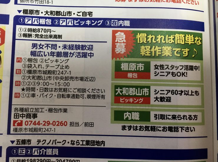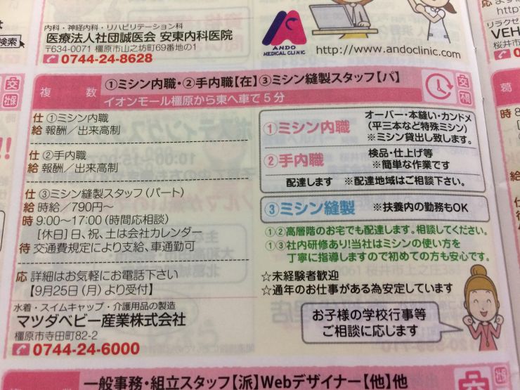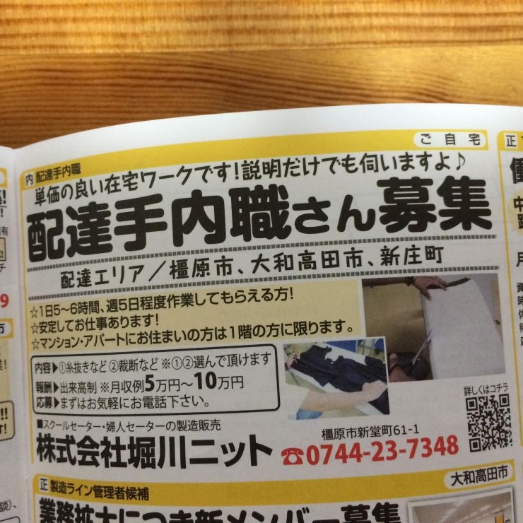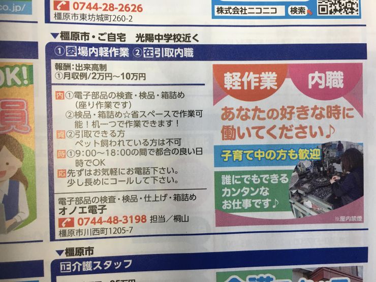 ユーザから投稿してもらった橿原市の内職チラシ情報を公開しています。