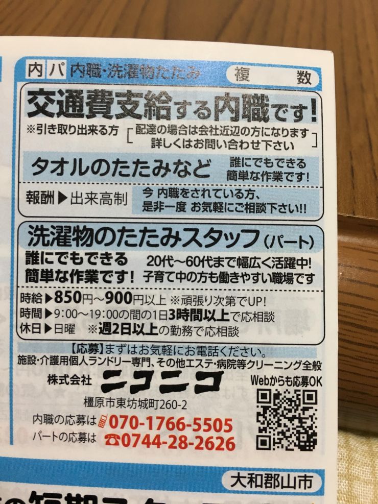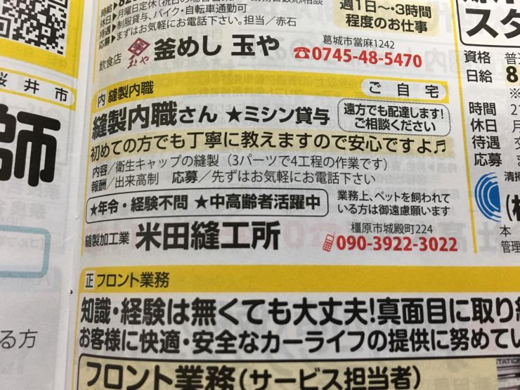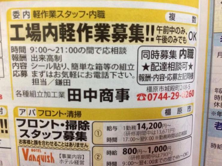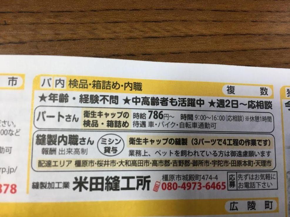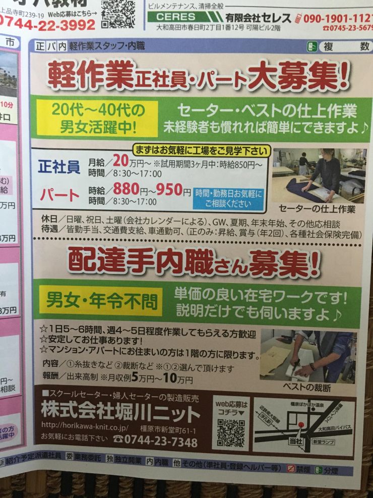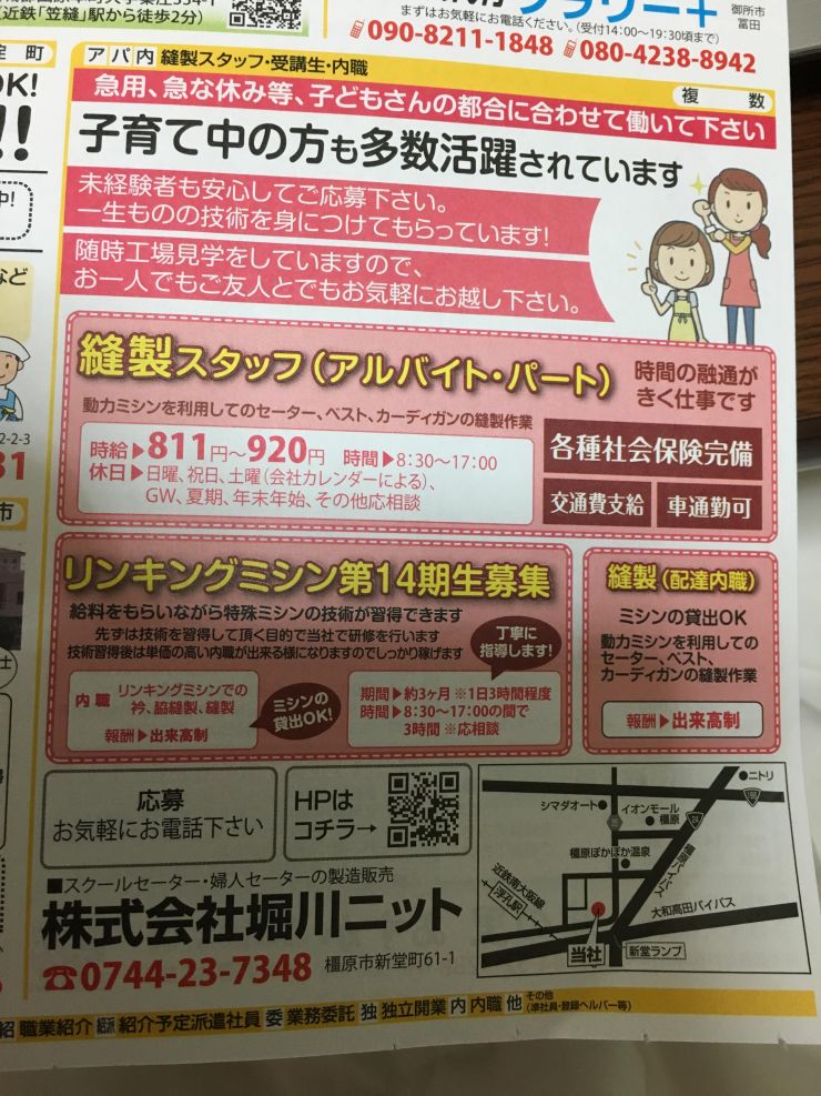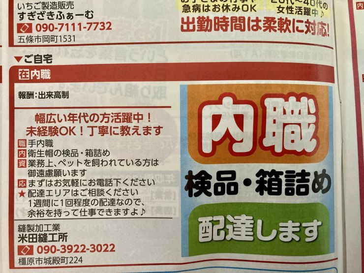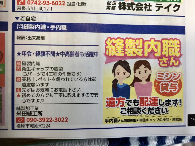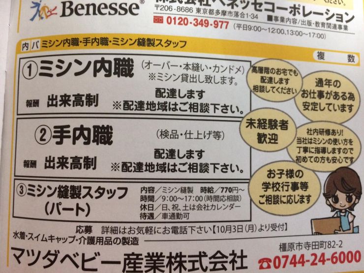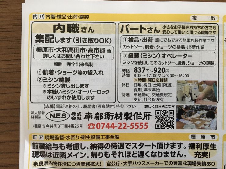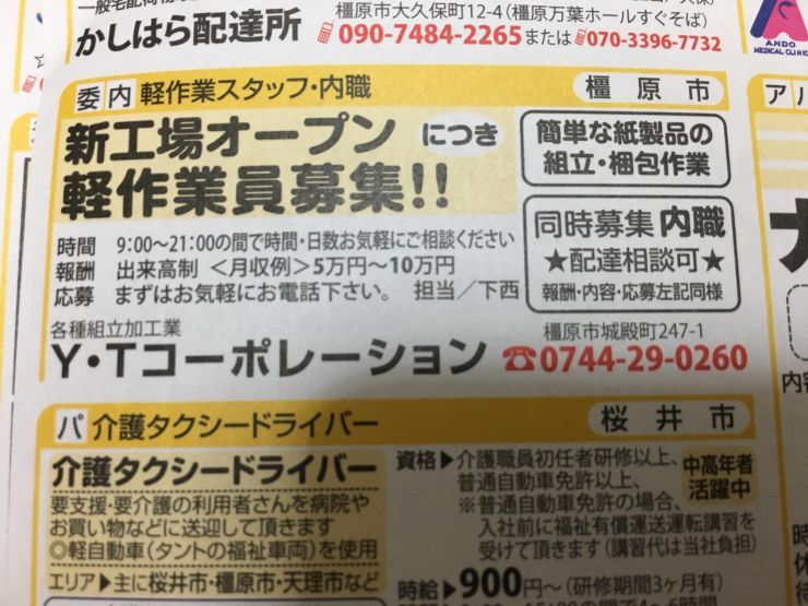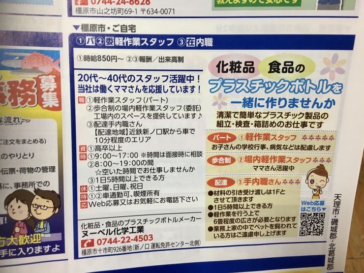 ユーザから投稿してもらった橿原市の内職チラシ情報を公開しています。