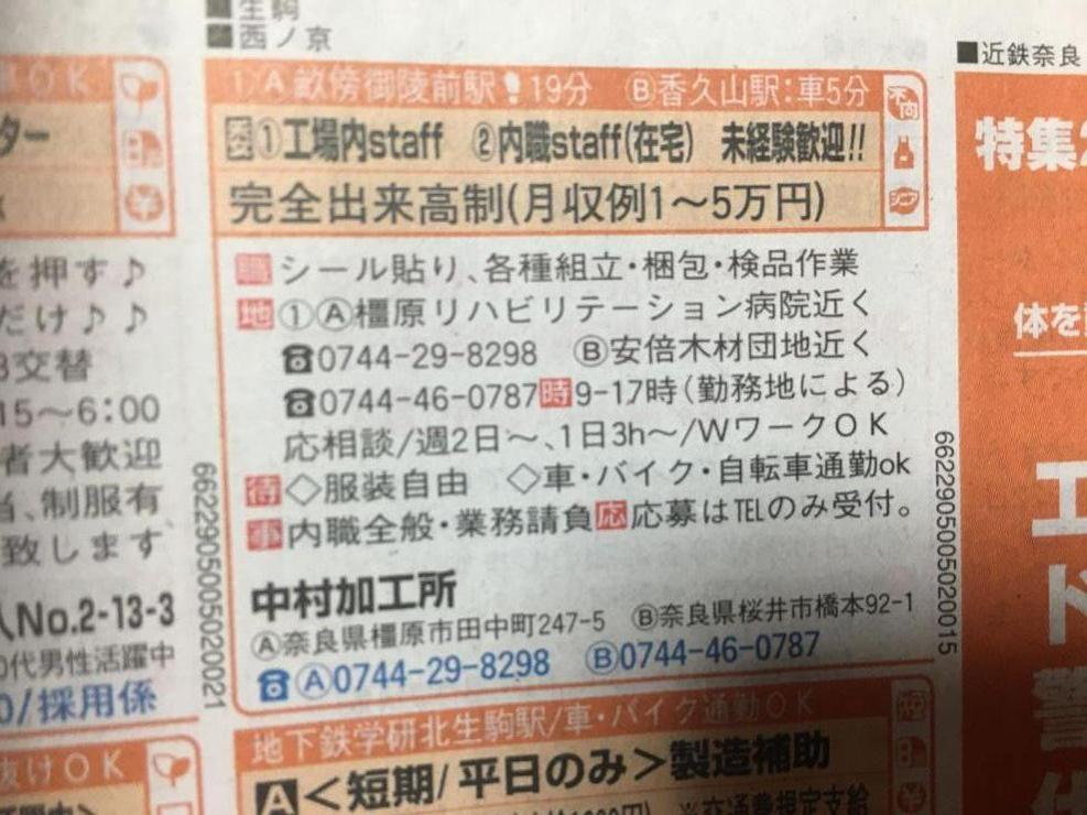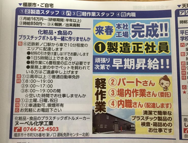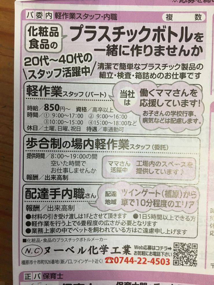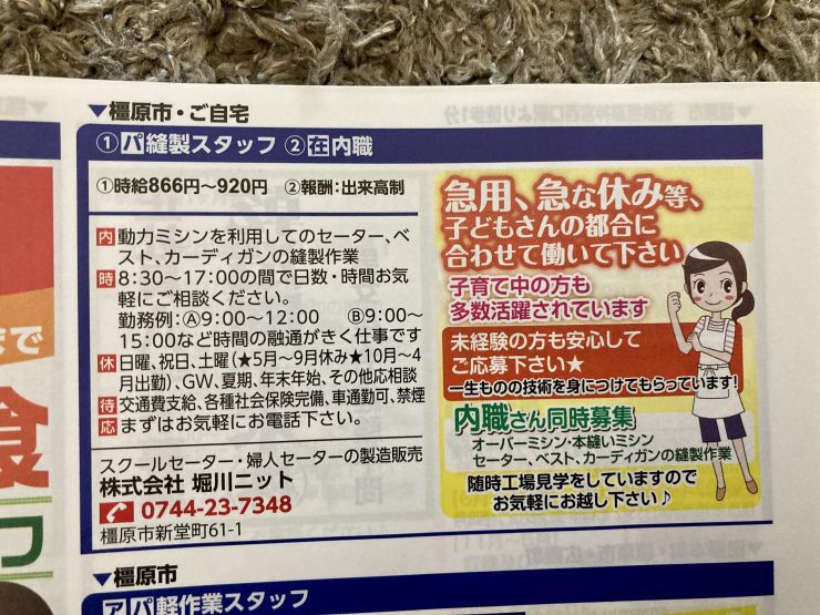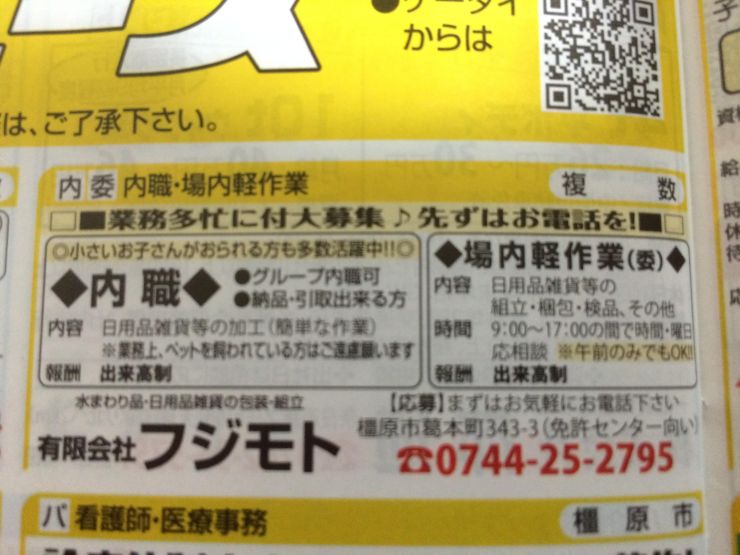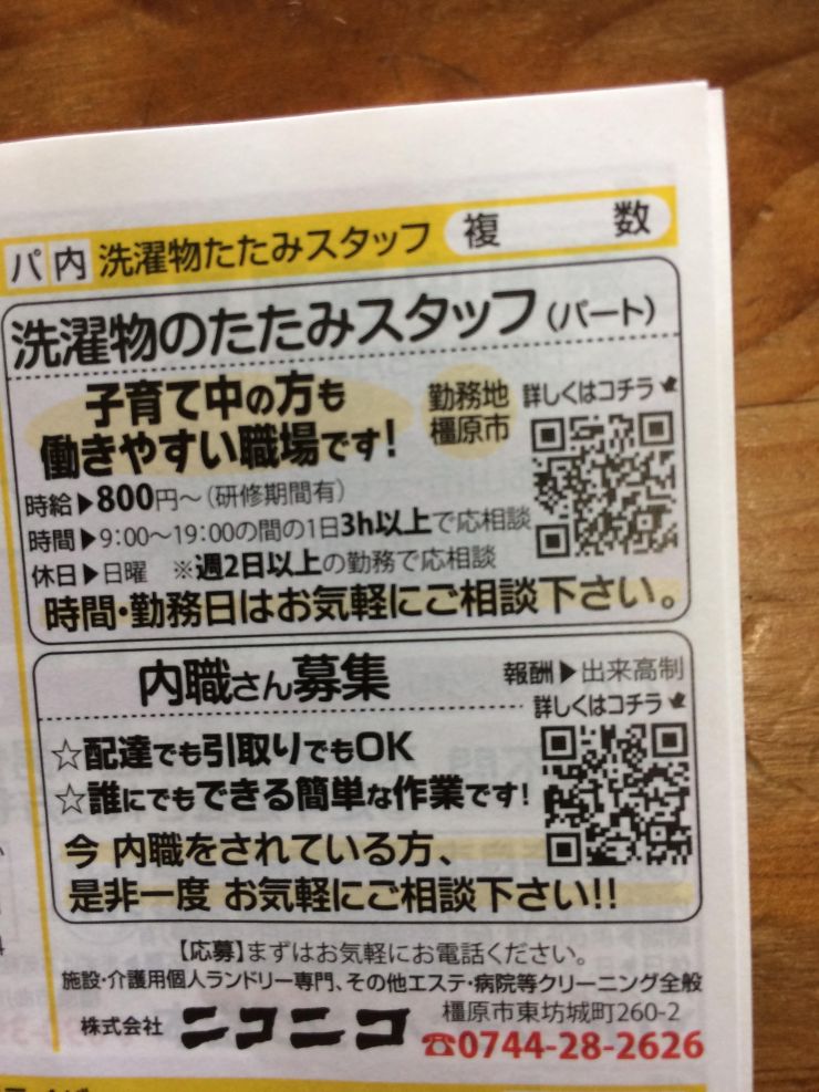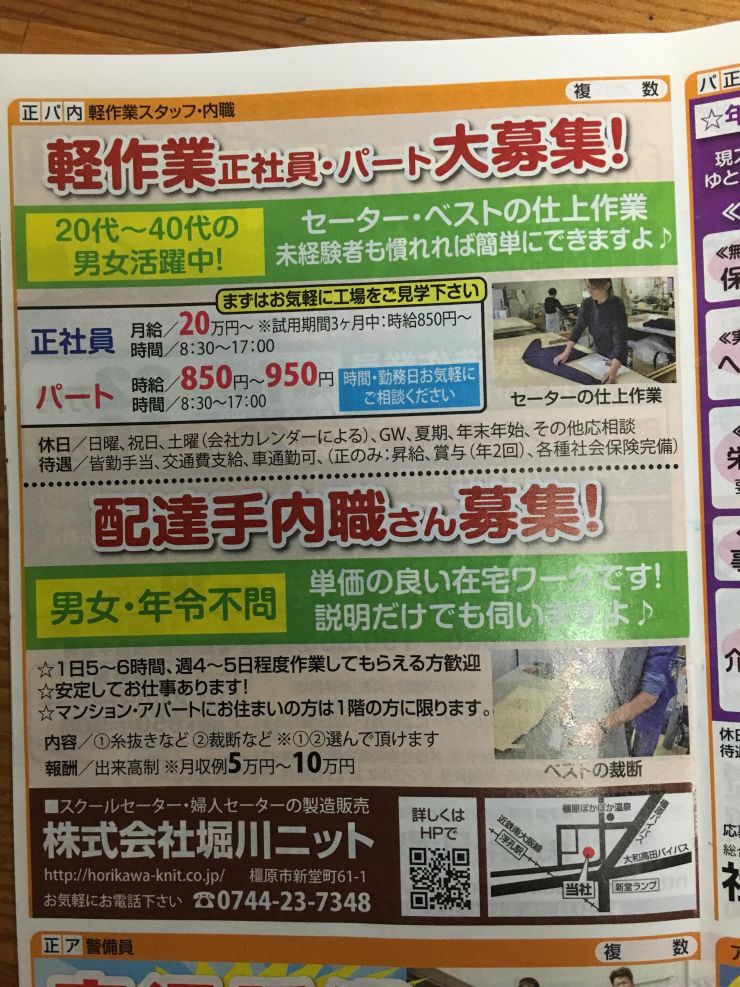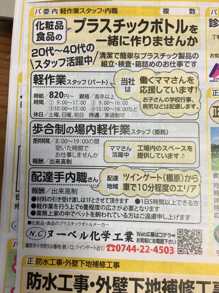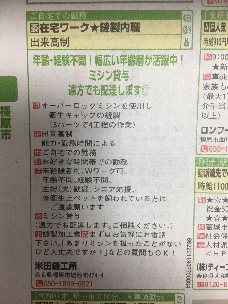 ユーザから投稿してもらった橿原市の内職チラシ情報を公開しています。