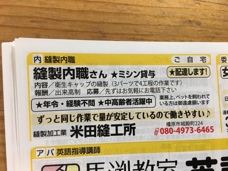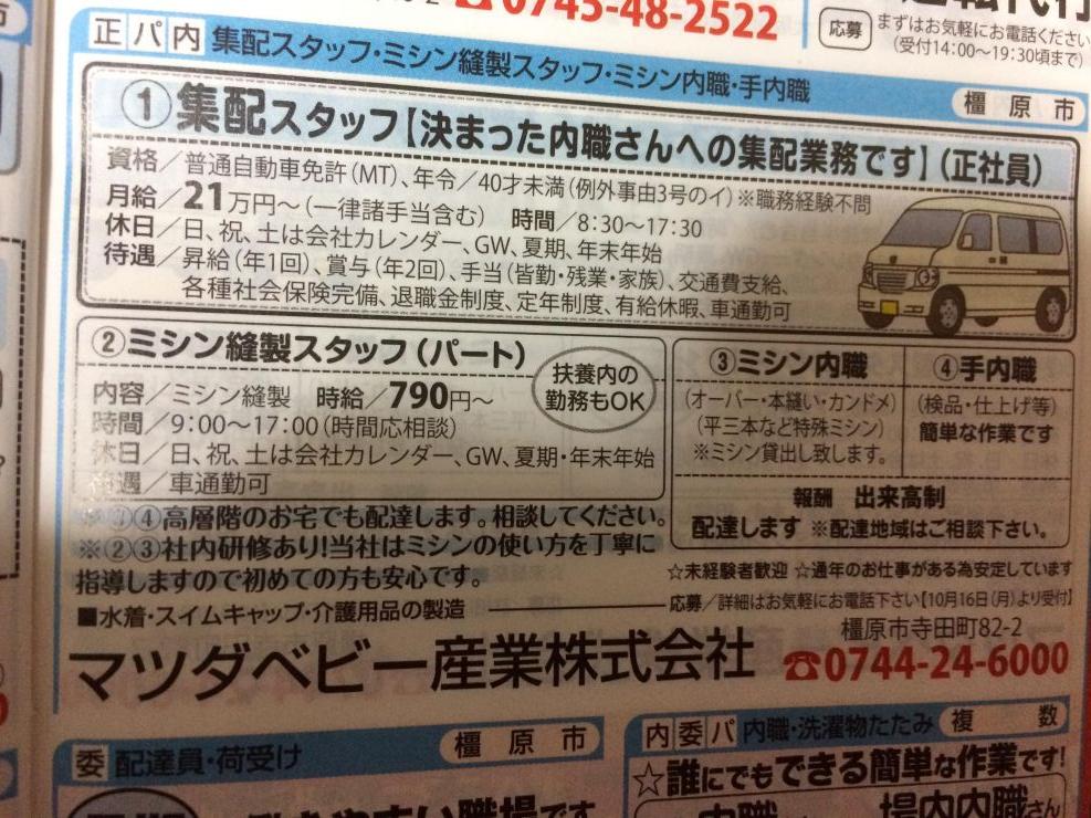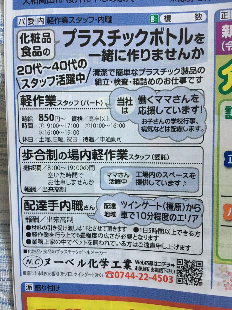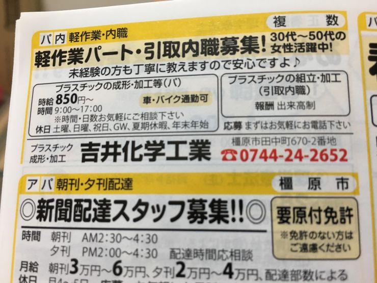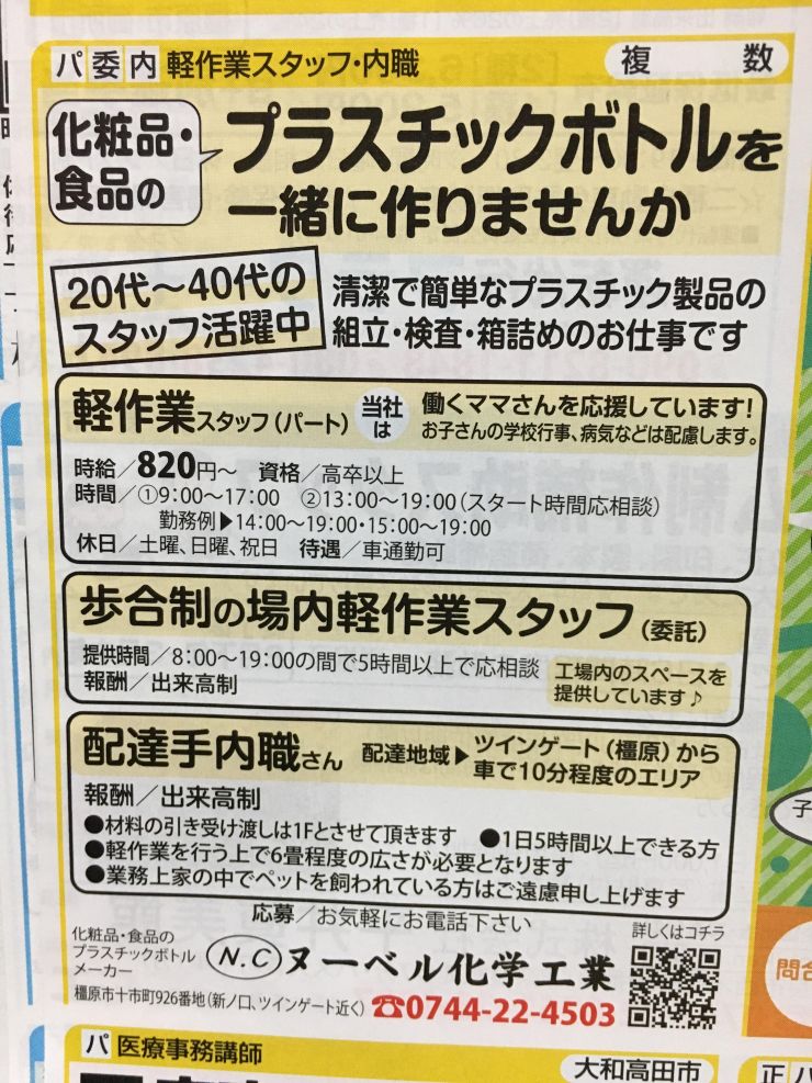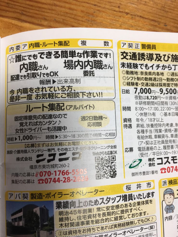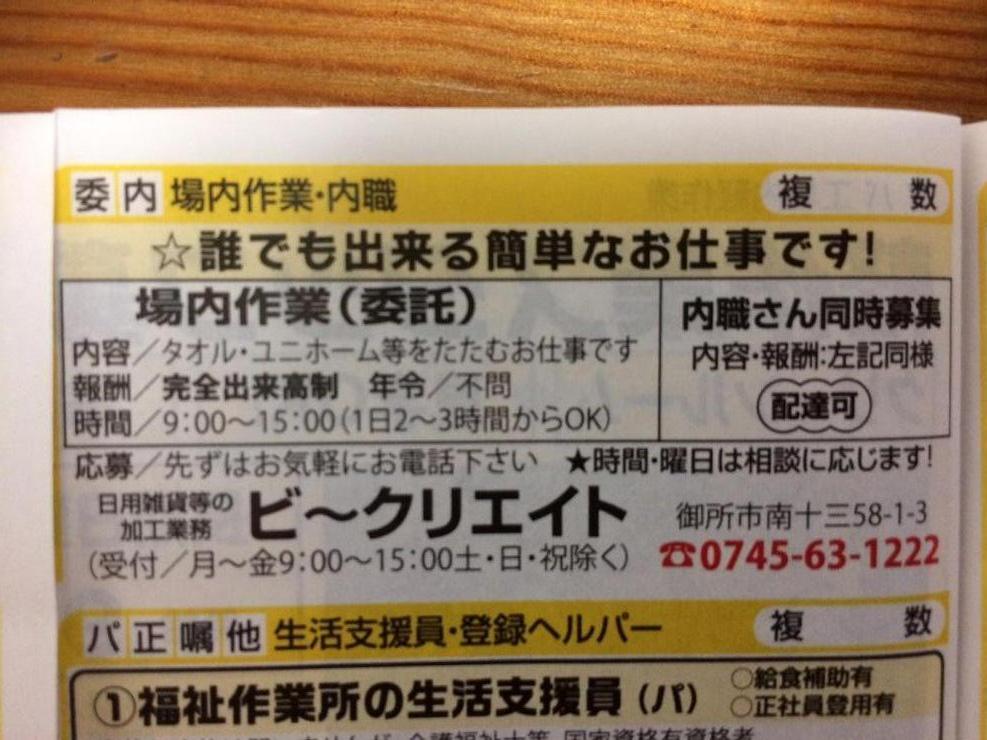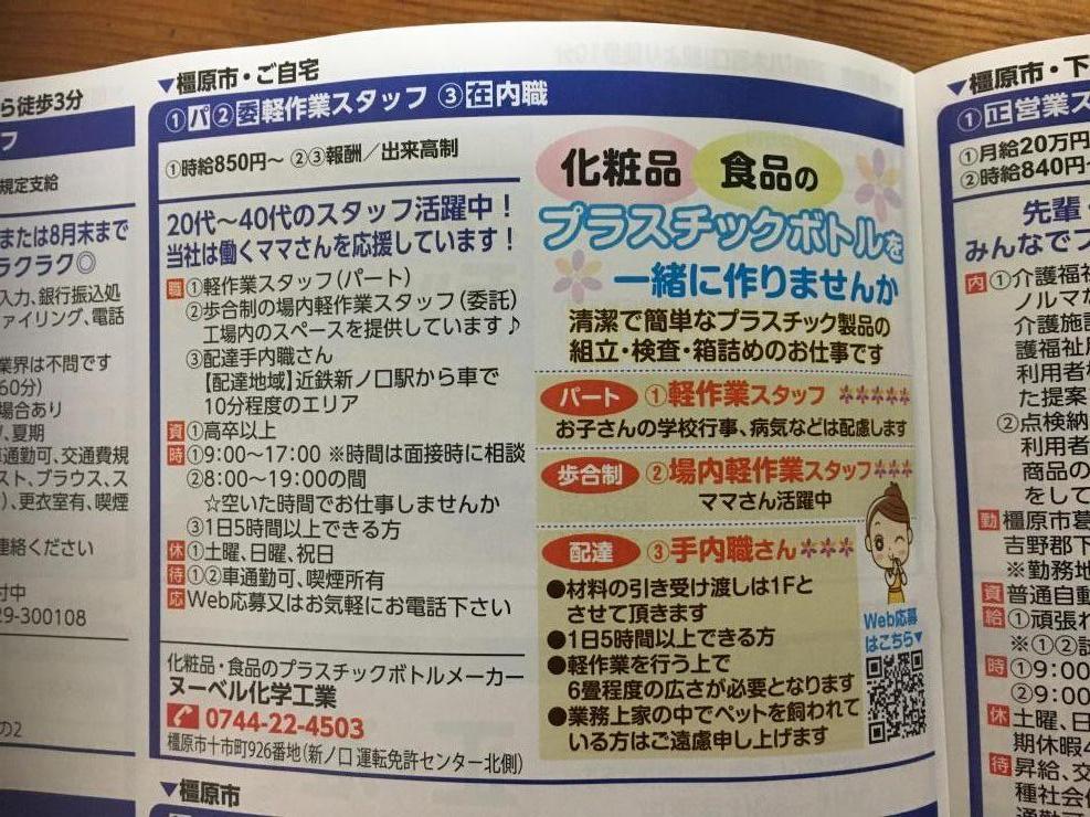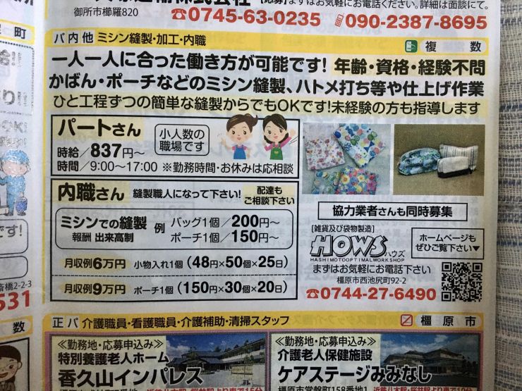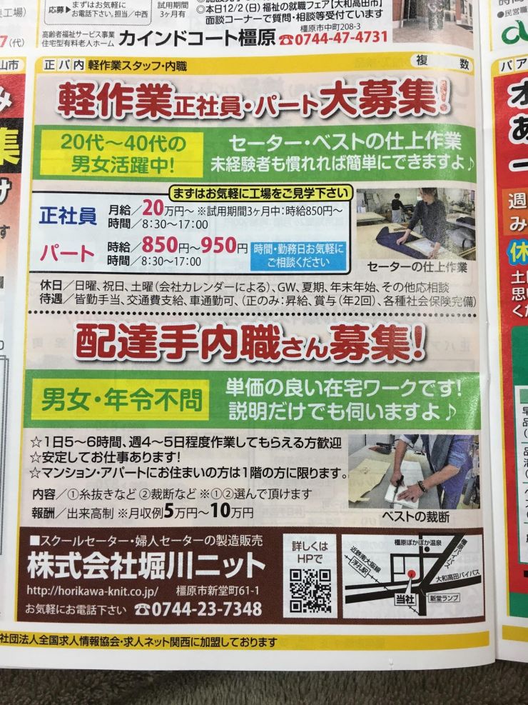 ユーザから投稿してもらった橿原市の内職チラシ情報を公開しています。