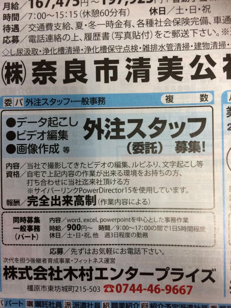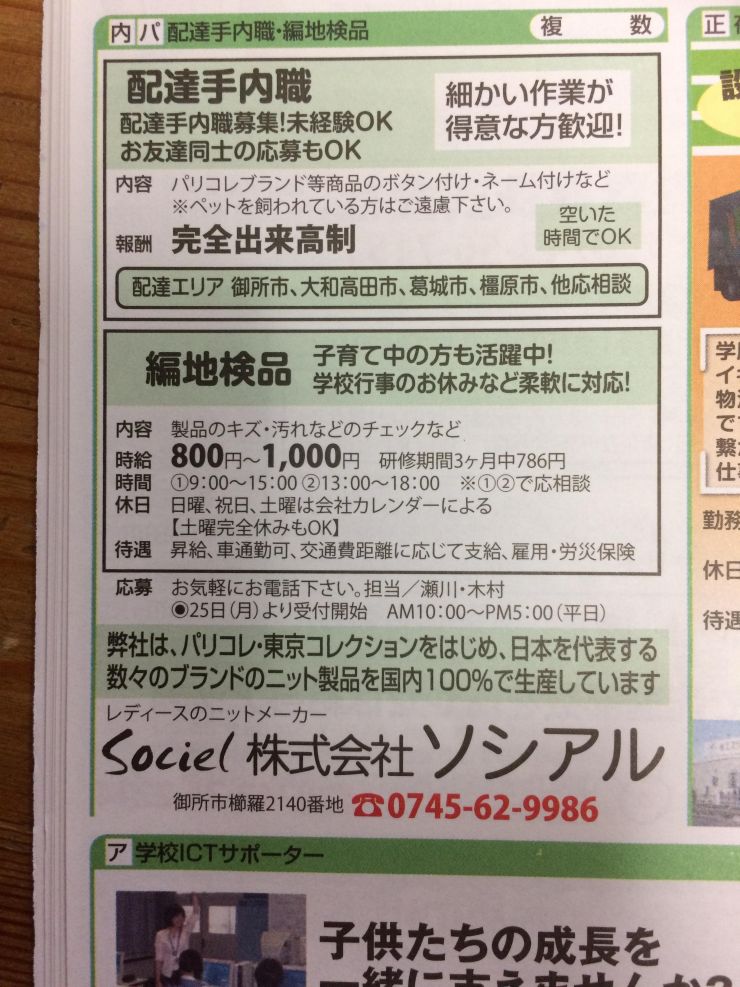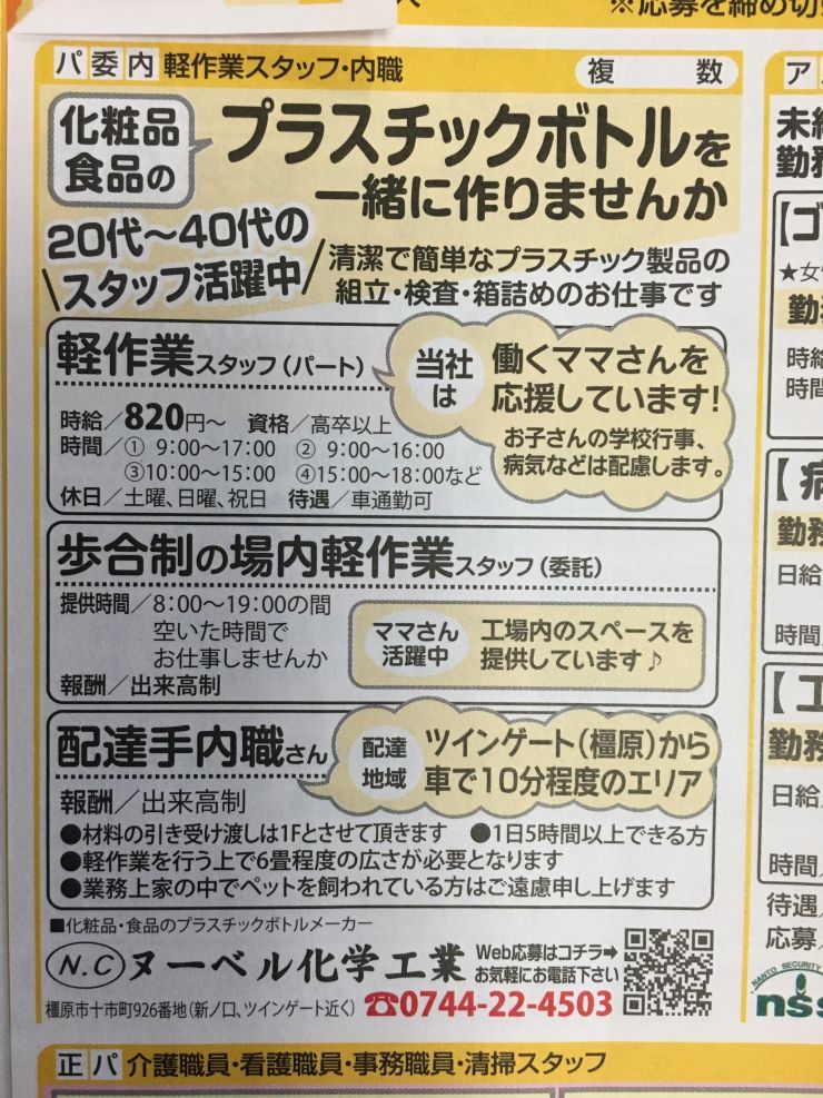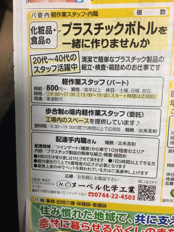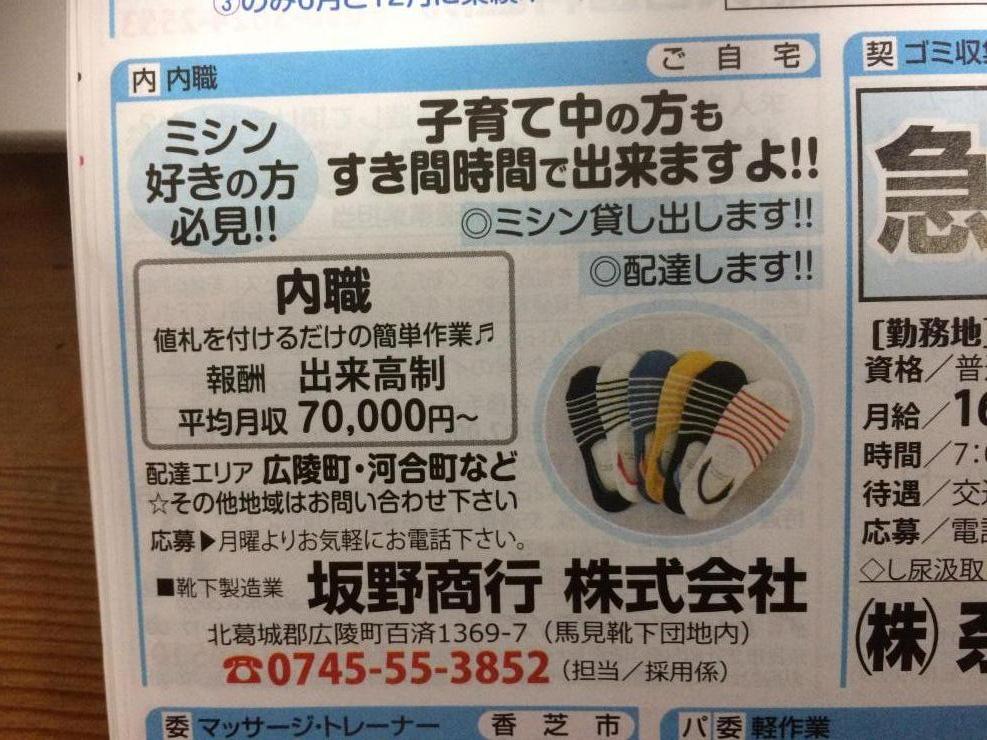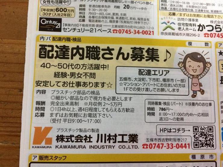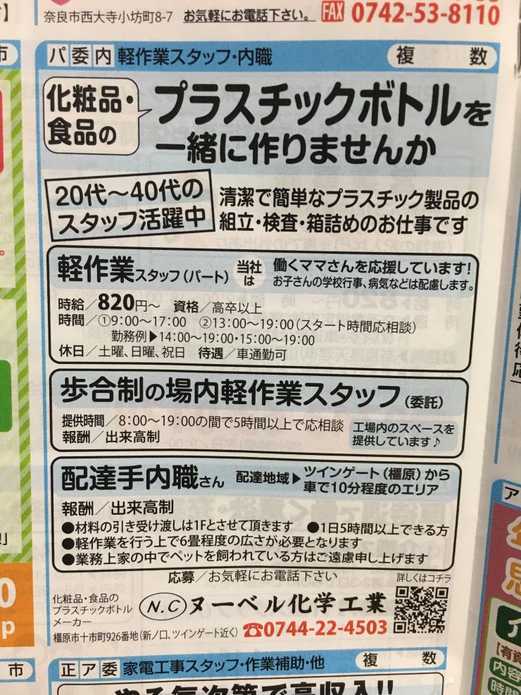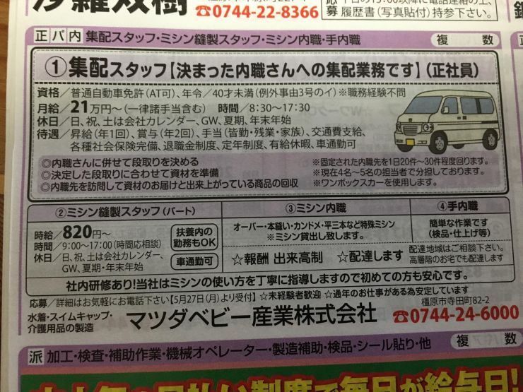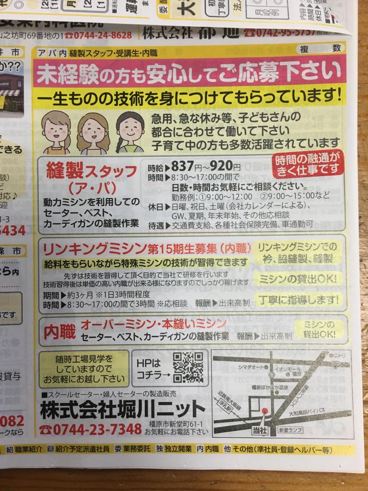 ユーザから投稿してもらった橿原市の内職チラシ情報を公開しています。