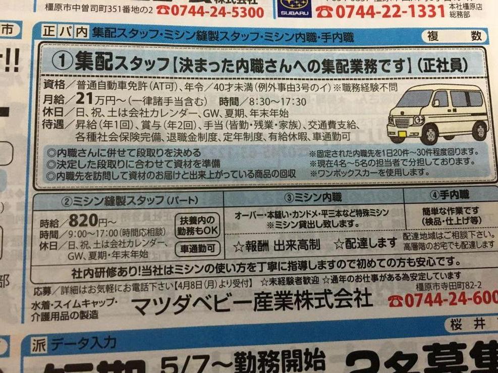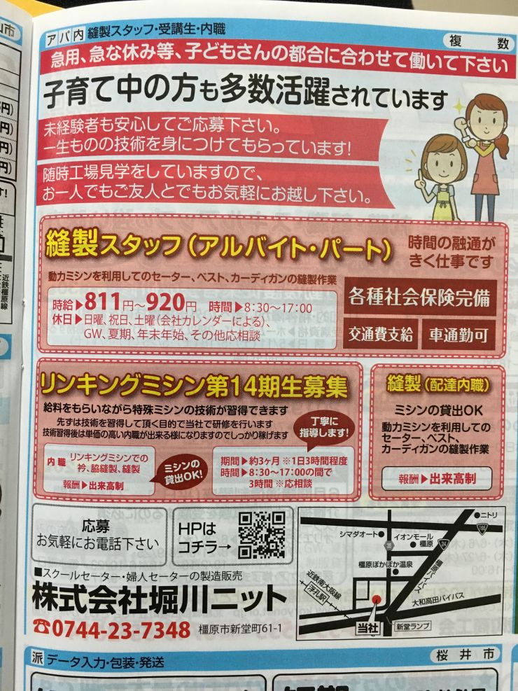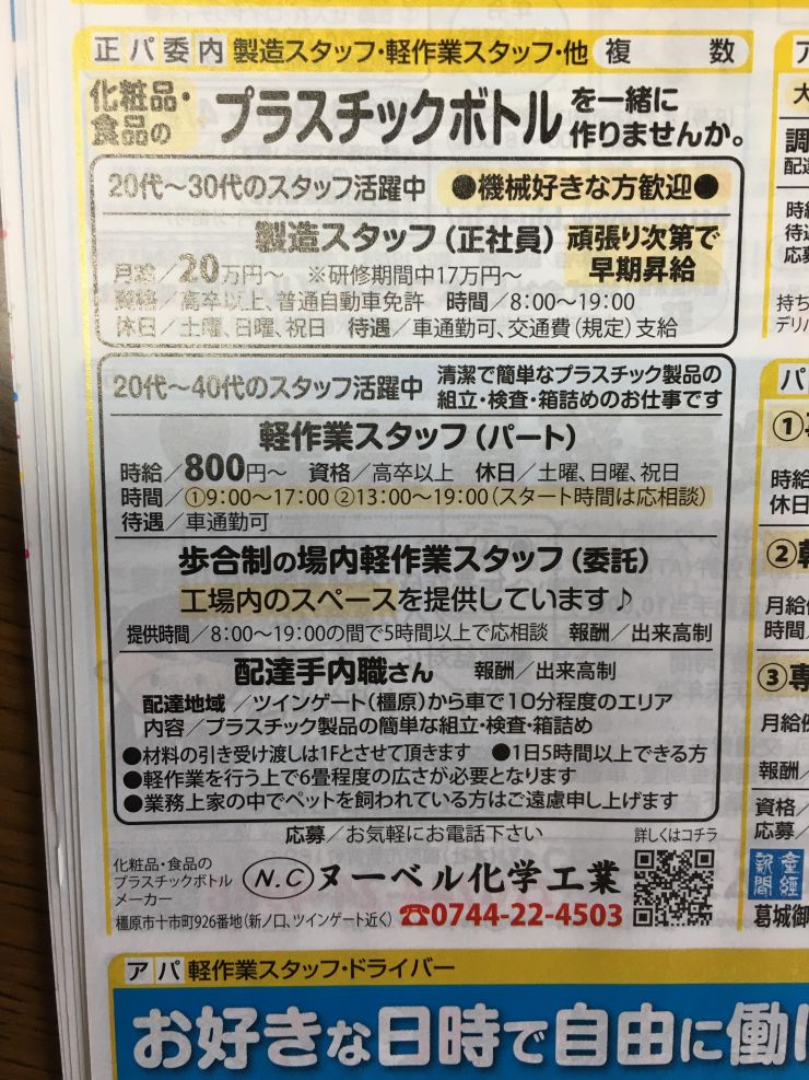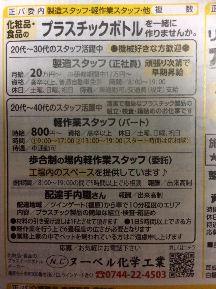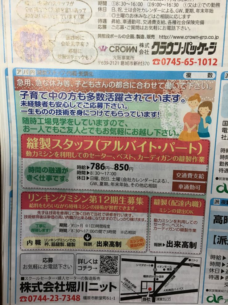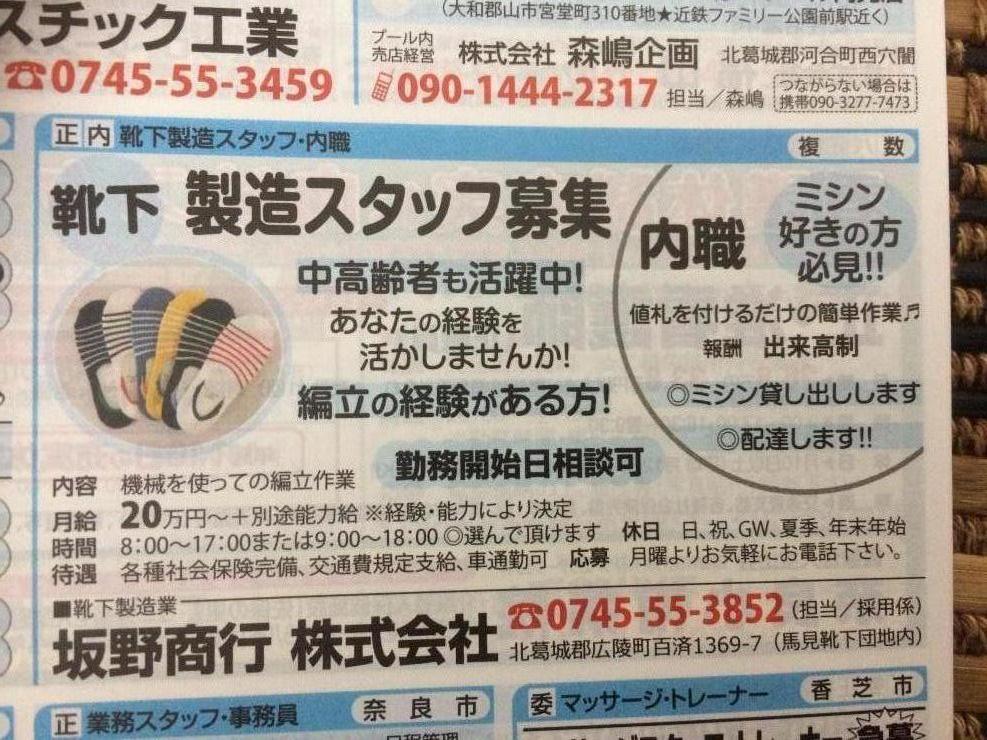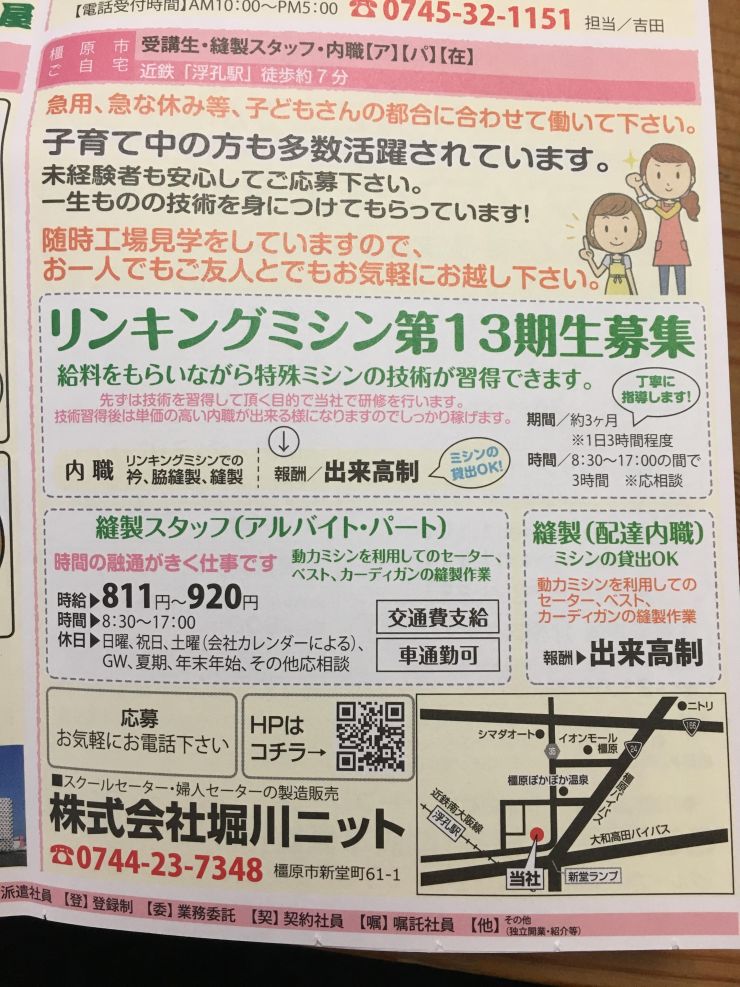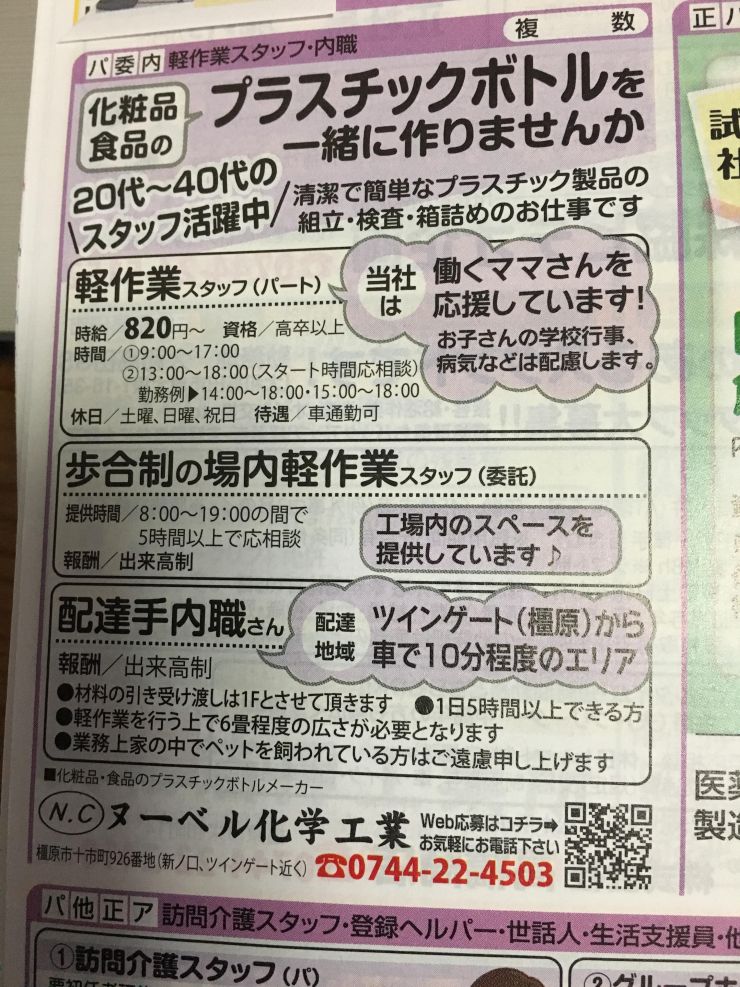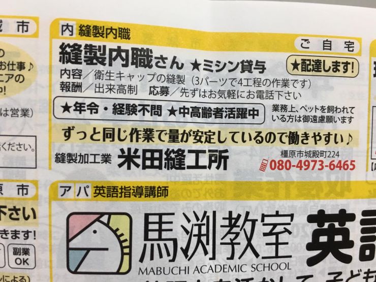 ユーザから投稿してもらった橿原市の内職チラシ情報を公開しています。