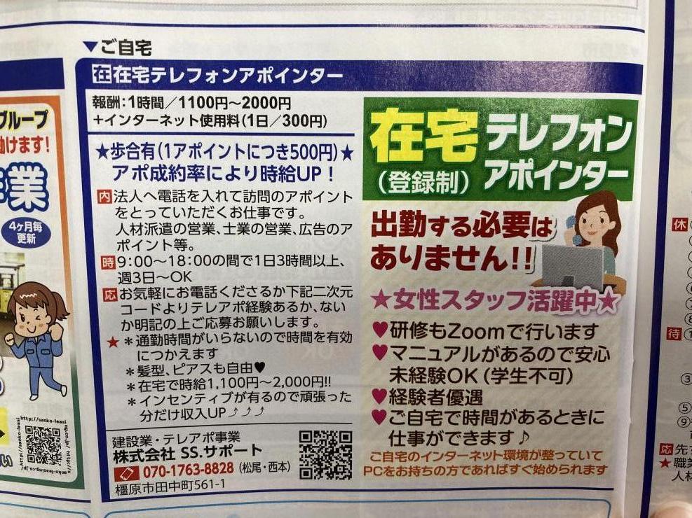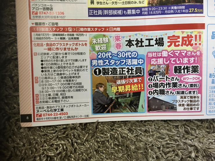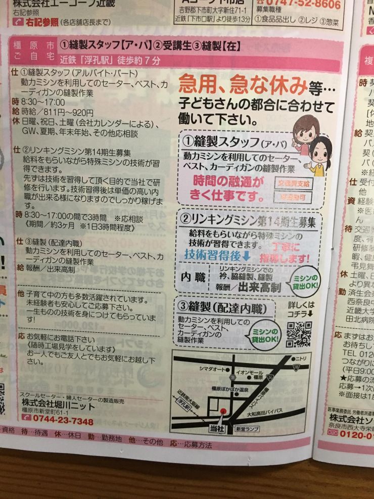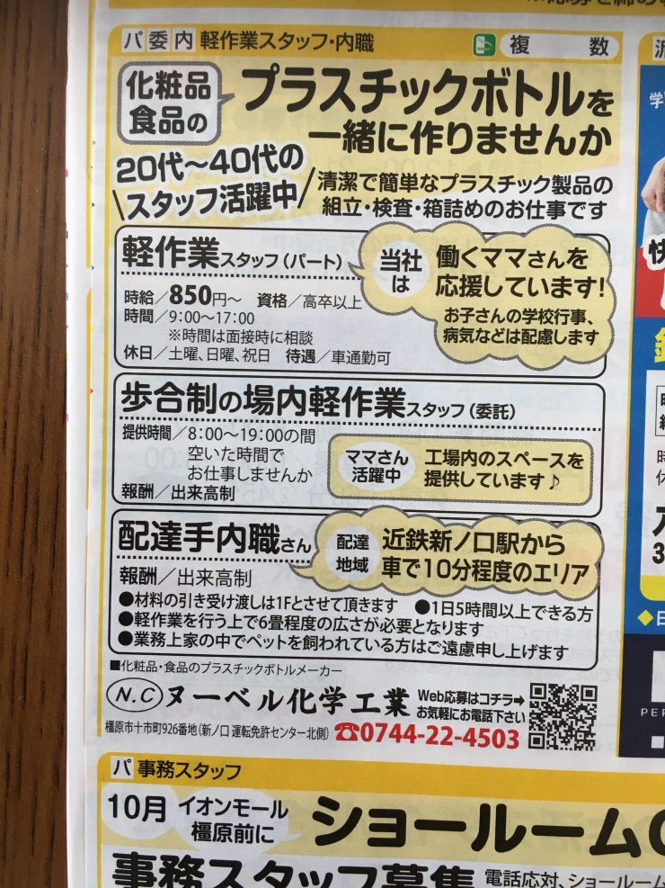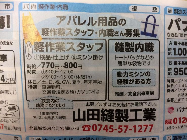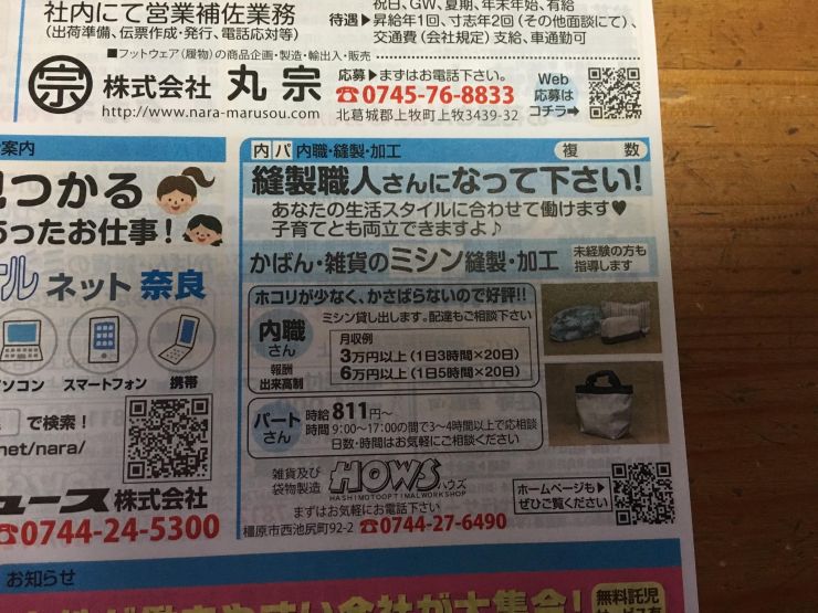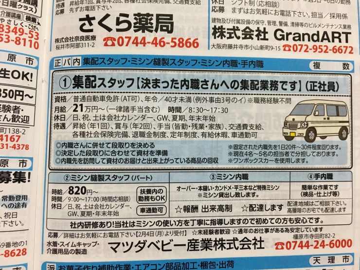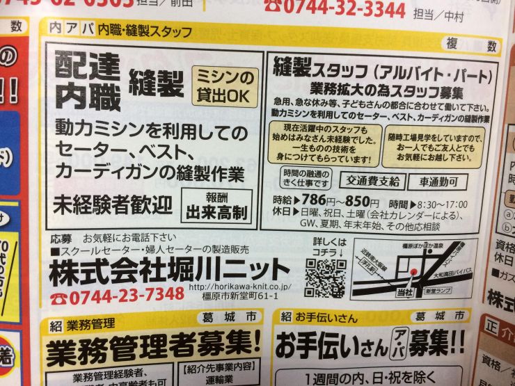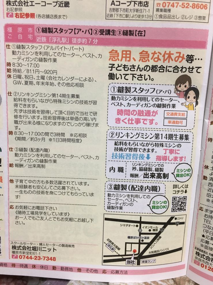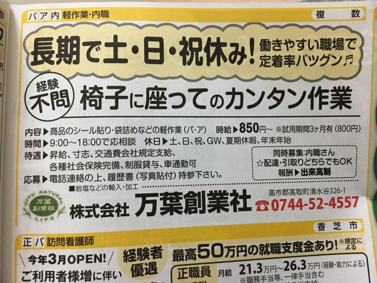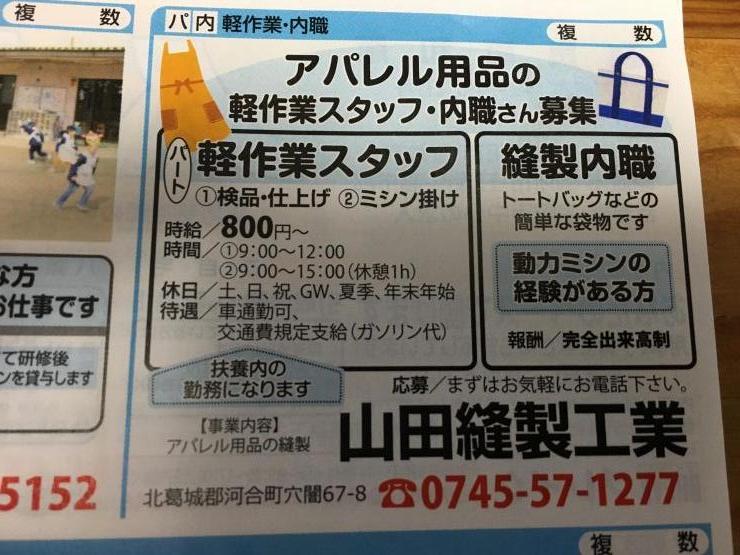 ユーザから投稿してもらった橿原市の内職チラシ情報を公開しています。