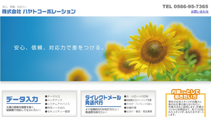 公式サイトへ「株式会社 ハヤトコーポレーション」の内職について、ホームページの記載内容から、オススメできそうか(安心できそうか)を在宅ワークガイド・スタッフが独自にチェックしました。(2016年1月18日チェック)