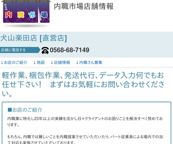 公式サイトへ「株式会社 内職市場 犬山楽田店(直営店)」の内職について、ホームページの記載内容から、オススメできそうか(安心できそうか)を在宅ワークガイド・スタッフが独自にチェックしました。(2016年1月18日チェック)