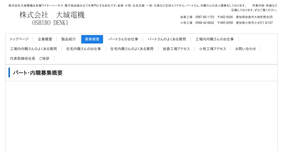 公式サイトへ「株式会社 大城電機」の内職について、ホームページの記載内容から、オススメできそうか(安心できそうか)を在宅ワークガイド・スタッフが独自にチェックしました。(2016年10月24日チェック)