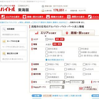 西尾市の在宅ワーク情報をまとめて検索したい方はindeedを利用してみて下さい。一つ一つの求人サイトを見る前に使ってみるといいですね。地域内での検索だと特定保健指導員の仕事が見つかります。検索範囲を広げていくとライターやお客様対応スタッフ、アンケートモニターなどの仕事も出てきます。文字だけでの表記で一件一件のスペースが少ないため、一ページで多くの求人情報が見られます。仕事探しを効率的に行ないたい方におすすめのサイトですよ。