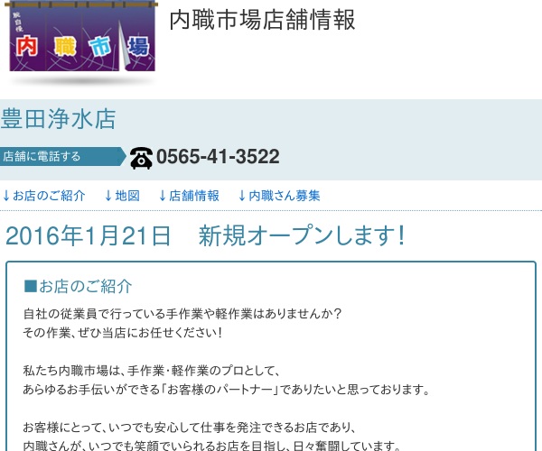 公式サイトへ「株式会社内職市場 豊田浄水店」の内職について、ホームページの記載内容から、オススメできそうか(安心できそうか)を在宅ワークガイド・スタッフが独自にチェックしました。(2016年8月30日チェック)