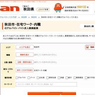 仕事探しも時間をかけずに行いたいという方はindeedを使ってみて下さい。ネット上の求人情報を一括して検索できるサイトです。多くの情報が得られて、似たような検索結果はまとめて表示されるので目的の仕事を見つけやすいのも魅力です。文字だけの表記なので余分なスペースをとらず、サッと目を通せるのもいいですね。秋田市では「ライター」、「オンライン家庭教師」などのお仕事が見つかります。円状に検索が出来る機能や並び替え機能など色々試してみてくださいね。