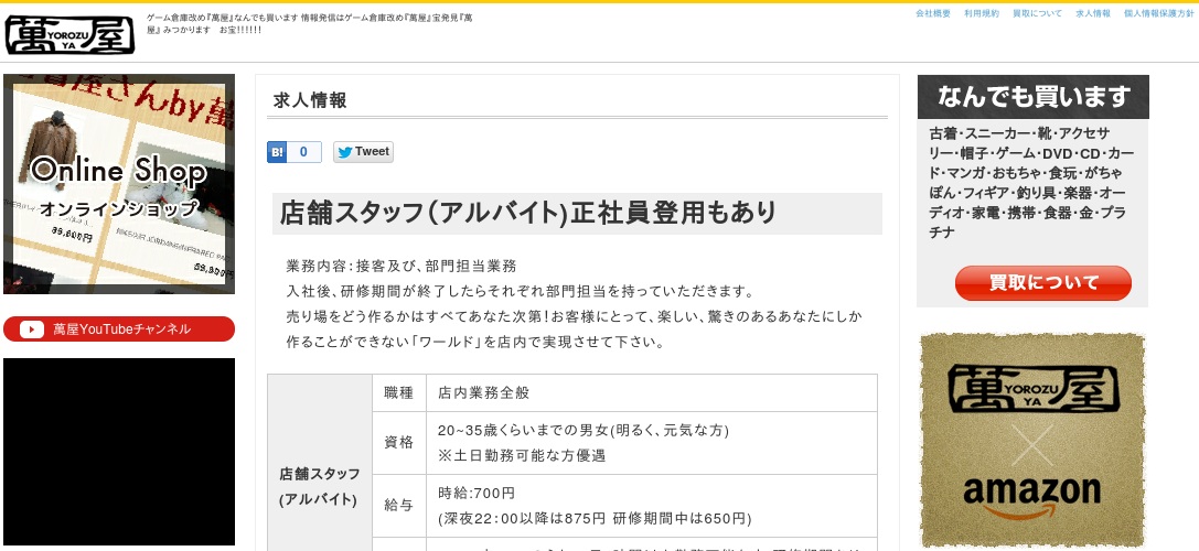 青森市に本社のある総合リサイクルショップになります。青森市には浜館店、青森東店、リユース倉庫の3店舗が現在あります。萬屋では店内加工スタッフを募集しているようです。店舗によって募集していたり募集していなかったりとあるようなので最寄りの店舗へ確認をしてください。作業内容は商品加工や陳列、値札付け、レジなど軽作業となっています。