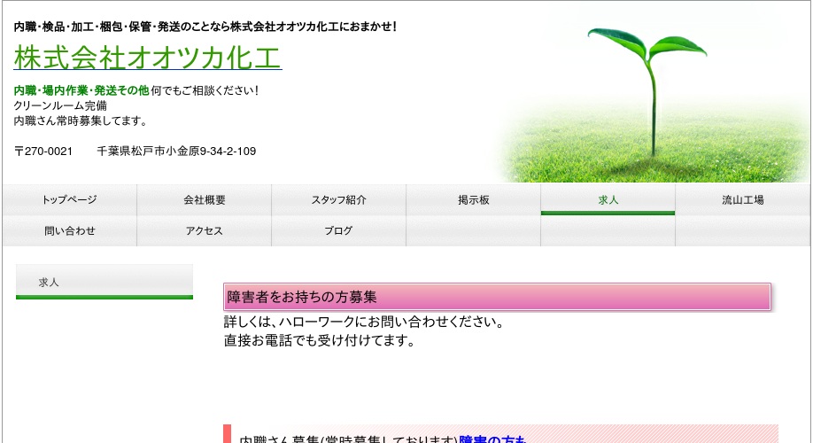 公式サイトへ「株式会社 オオツカ化工」の内職について、ホームページの記載内容から、オススメできそうか(安心できそうか)を在宅ワークガイド・スタッフが独自にチェックしました。(2016年10月17日チェック)