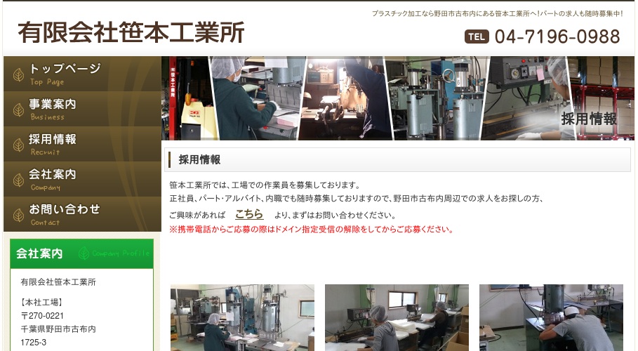 公式サイトへ「有限会社 笹本工業所」の内職について、ホームページの記載内容から、オススメできそうか(安心できそうか)を在宅ワークガイド・スタッフが独自にチェックしました。(2016年1月9日チェック)