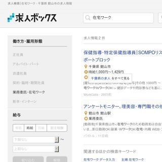 特定保健指導員、アンケートモニターのお仕事が見つかるのが求人ボックスです。キーワードに在宅、勤務地に館山市と入れると出てきますよ。キーワードを空欄、勤務地に在宅と入れると数千件の在宅ワーク情報が出てくるのでそちらも参考にしてください。文字だけのシンプルな表示で見やすいサイトです。気に入った求人情報はお気に入りを押しておくと後から見直しやすいです。こだわり条件で絞り込んだり、新着求人メールを利用したりと色々な使い方をしてみてください。
