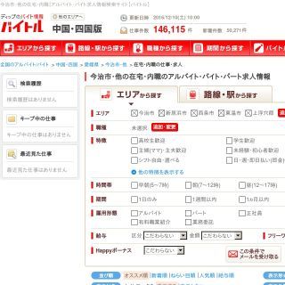 インターネット上にはさまざまな求人サイトがありますが、その内の20の求人サイトをパートナーズサイトとして一度に検索できる「アルバイトEX」です。西条市ではキーワードに業務委託と入れて検索すると、セラピスト2件、保健指導・特定保健指導員2件、ヤクルトスタッフ5件が見つかります。ページ下部にあるPR求人にも似たような検索条件のお仕事が表示されますが、ここにも見逃せない求人が載る場合があります。販売スタッフ、家庭教師、CADスタッフの3件が見つかりました。いろいろなお仕事が探せるので便利なサイトですね。