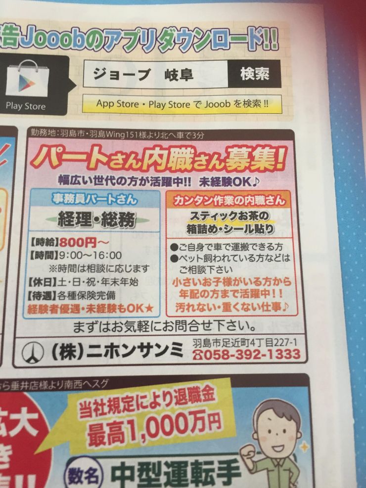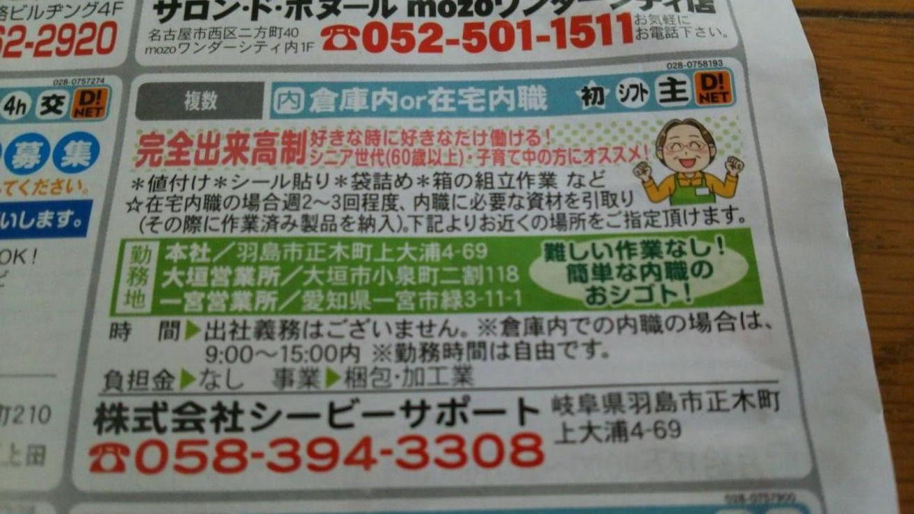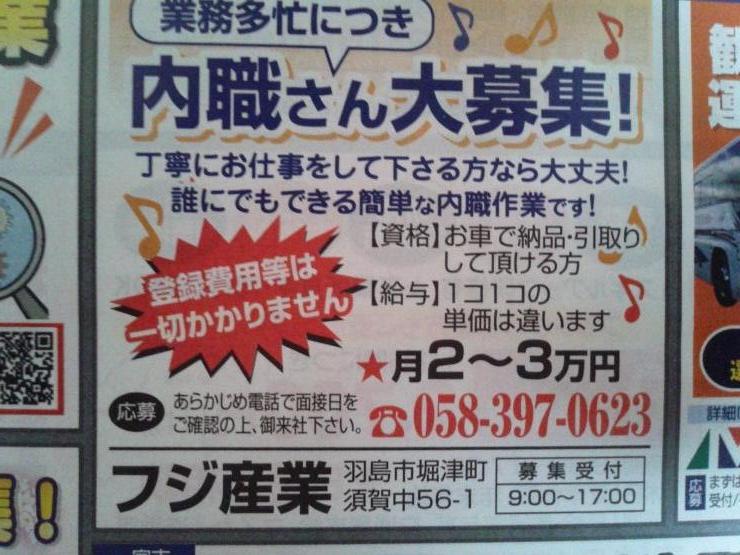 ユーザから投稿してもらった羽島市の内職チラシ情報を公開しています。