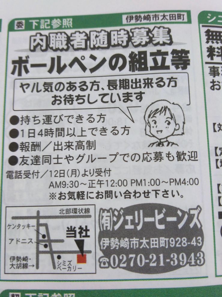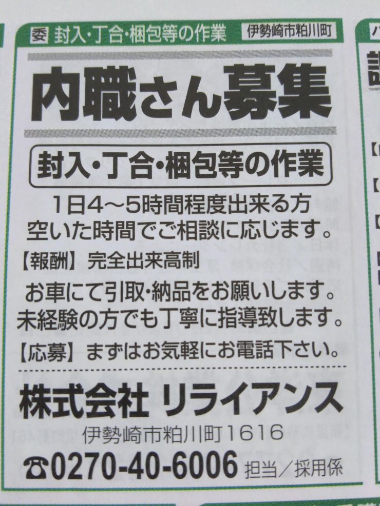 ユーザから投稿してもらった伊勢崎市の内職チラシ情報を公開しています。