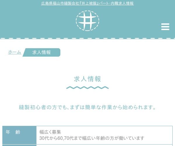 公式サイトへ「井上被服」の内職について、ホームページの記載内容から、オススメできそうか(安心できそうか)を在宅ワークガイド・スタッフが独自にチェックしました。(2016年8月27日チェック)