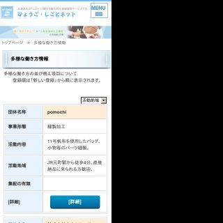 兵庫県では県のホームページも頼りになりますよ。手作業内職を探している方は特に参考にしてくださいね。並び順を活動地域に切り替えると目的の地域の求人情報が見やすくなります。加古川市では「ゴム製品の加工」のお仕事が見つかります。また、兵庫県全域で「縫製」、「ライター」、「文字入力」などのお仕事もあります。仕事の詳細が丁寧に書かれているのでとても理解しやすいサイトです。集配の有無やペットの可否など、条件をよく調べてから応募するといいでしょう。