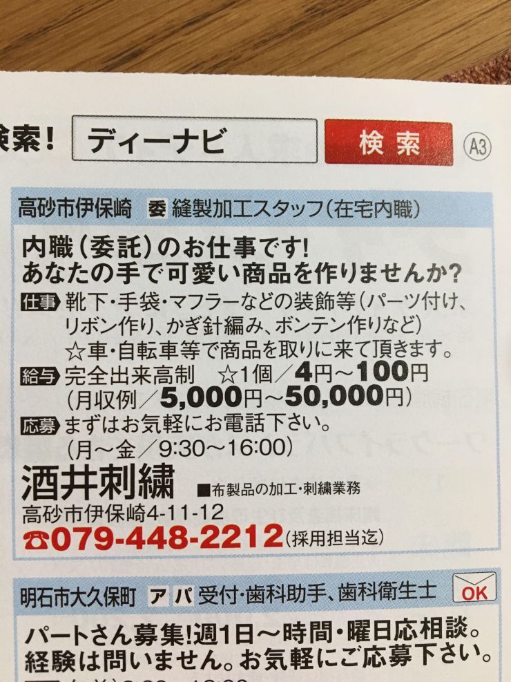 ユーザから投稿してもらった加古川市の内職チラシ情報を公開しています。