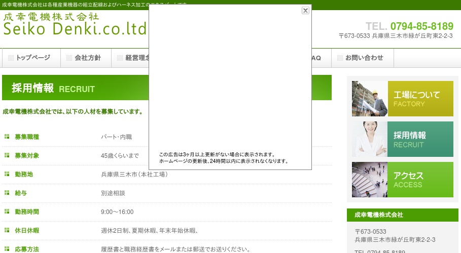 公式サイトへ「成幸電機株式会社」の内職について、ホームページの記載内容から、オススメできそうか(安心できそうか)を在宅ワークガイド・スタッフが独自にチェックしました。(2016年1月18日チェック)