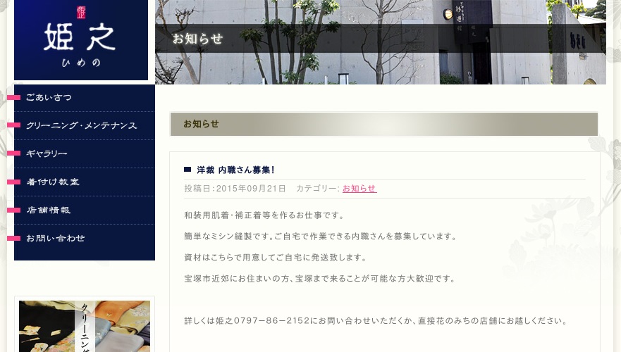 公式サイトへ「株式会社 姫之」の内職について、ホームページの記載内容から、オススメできそうか(安心できそうか)を在宅ワークガイド・スタッフが独自にチェックしました。(2016年1月16日チェック)