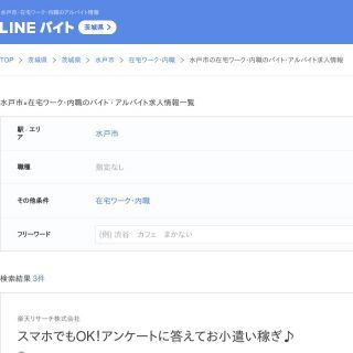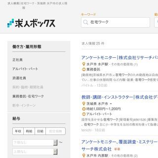 こちらも求人サイトの情報をまとめて検索できるサイトです。価格.comでおなじみの株式会社カカクコムが運営しています。キーワードと勤務地を入力するだけで検索ができるので簡単ですね。水戸市では「在宅講師」、「アンケートモニター」などの仕事があります。シンプルなデザインで、重要なところだけ分かりやすく表示されているので目視性が高いです。サッと目を通すだけでも情報が頭に入ってきます。仕事の詳細は各求人サイトから見て下さいね。