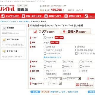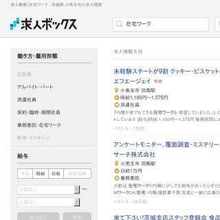価格.comで有名な企業が運営する求人サイトです。勤務地とキーワードを入力するだけで検索ができるので簡単です。条件に合った求人情報をネット上から集めてきてくれますよ。小美玉市で検索するとアンケートモニターの募集が2件出てきます。まとめて応募機能や、メールで情報を送ってくれるサービスはありませんが、勤務地に在宅と入力すると全国で募集されている在宅ワークの情報が多数出てくるのでそこがとても魅力的なサイトです。