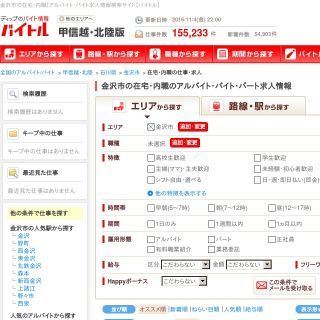 はたらいくやDODAなど様々な求人サイトの情報を一括して検索できる便利なサイトです。とにかく手間をかけずに仕事を探したい方におすすめです。金沢市では「問い合わせスタッフ」、「Webショップデザイン」、「テレマーケティング」など様々な仕事があります。多くの在宅ワークが出てくるのでとても参考になるサイトですよ。候補が多すぎる場合は、検索オプションを使って必要ない情報を削ってくださいね。検索条件を登録しておくと、新着求人を教えてくれるサービスも便利ですよ。