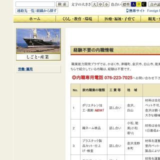 石川県の公式サイトの職業能力開発プラザの内職情報のページなります。金沢市などに居住している方にむけた内職情報をページ上で検索することができ、内職専用電話が用意されているなど、とても便利なページになっていると思います。