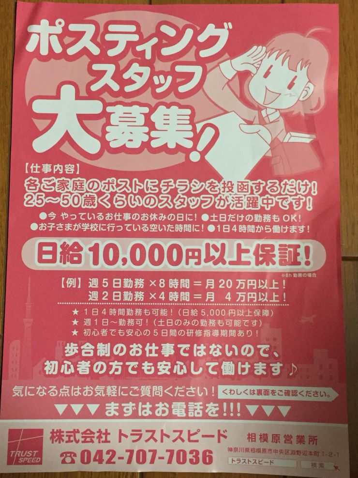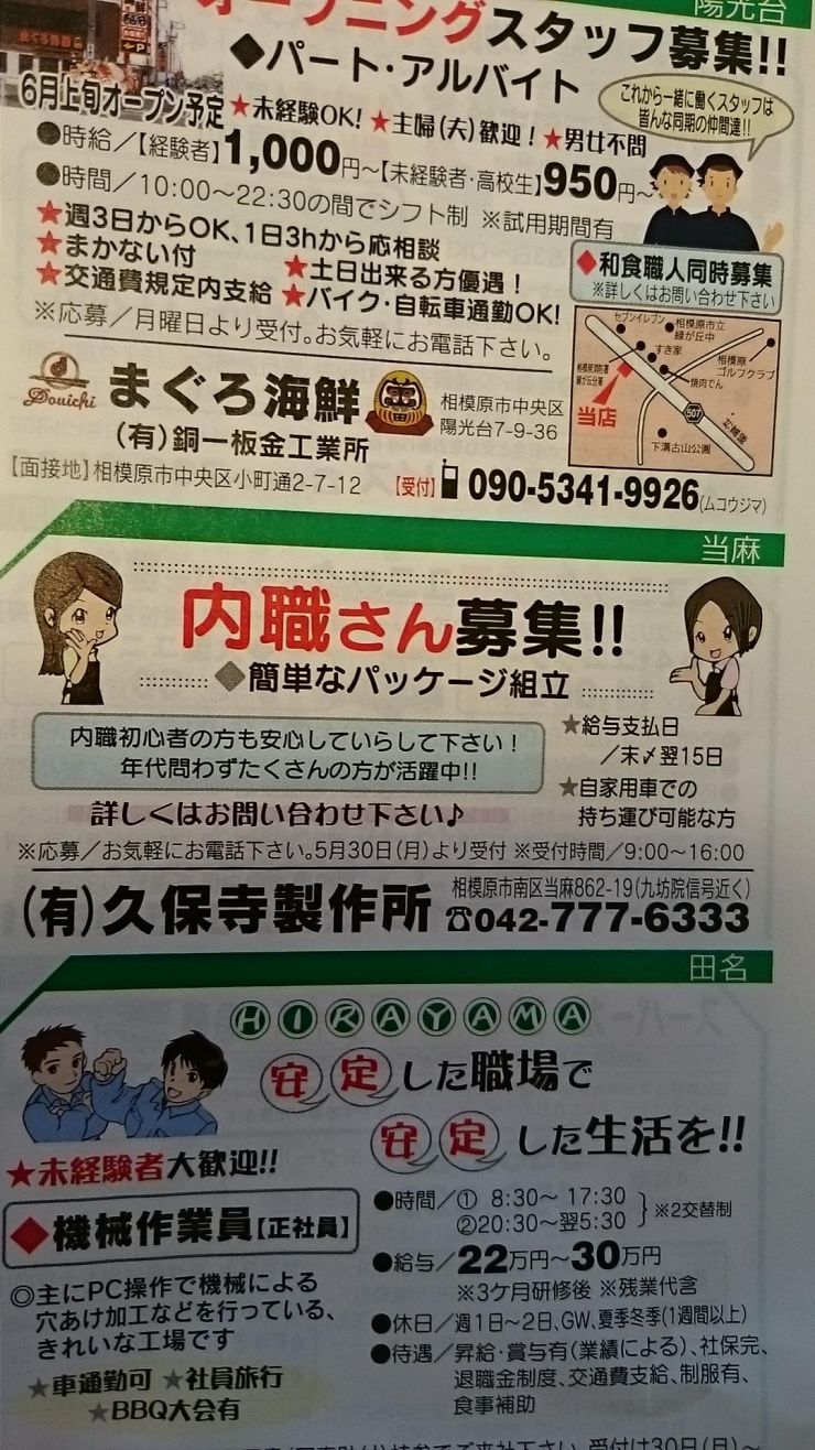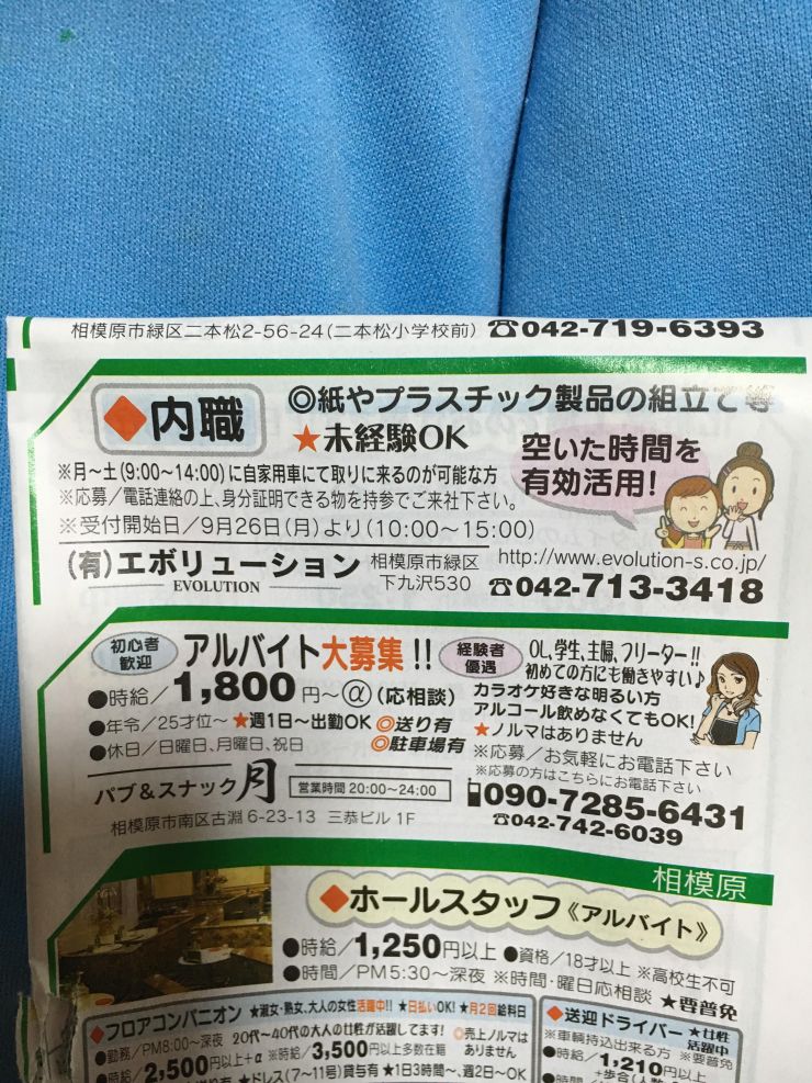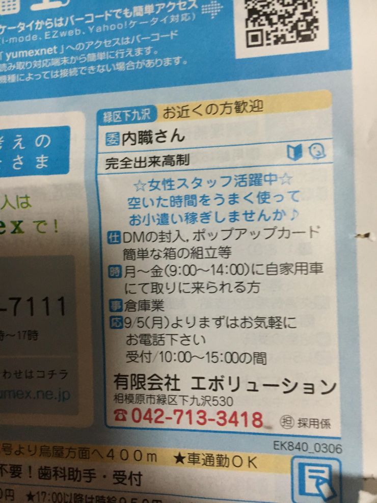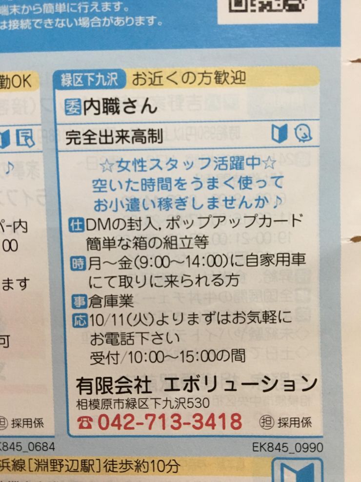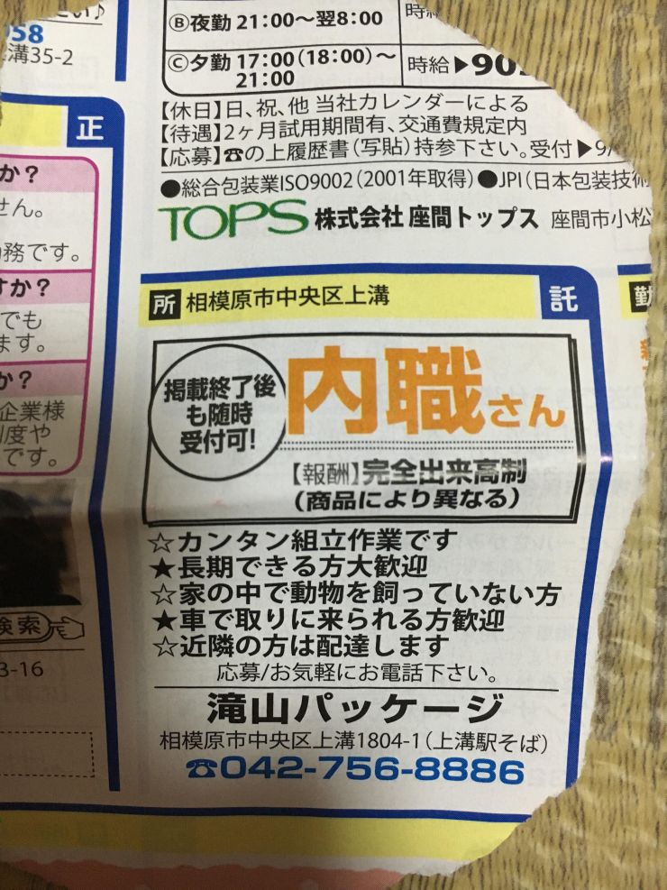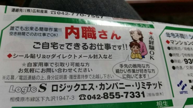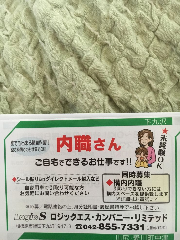 ユーザから投稿してもらった相模原市の内職チラシ情報を公開しています。