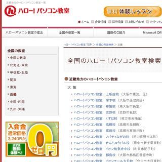 「ハロー!パソコン教室」は、Excelやwordなど、知りたいところや疑問点をピンポイントに学べるコース設定を行っているパソコン教室です。個別のカリキュラムがあるのはうれしいポイントですね。コースごとの詳しい料金は開示されていませんので、興味がある方は直接問い合わせをしてみるか、無料体験レッスンに申し込みをしてみましょう。教室は京都市内を中心として府内6か所にあり、多くはショッピングセンターに入っていますのでレッスンついでの買い物にも便利です。