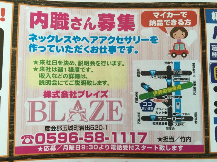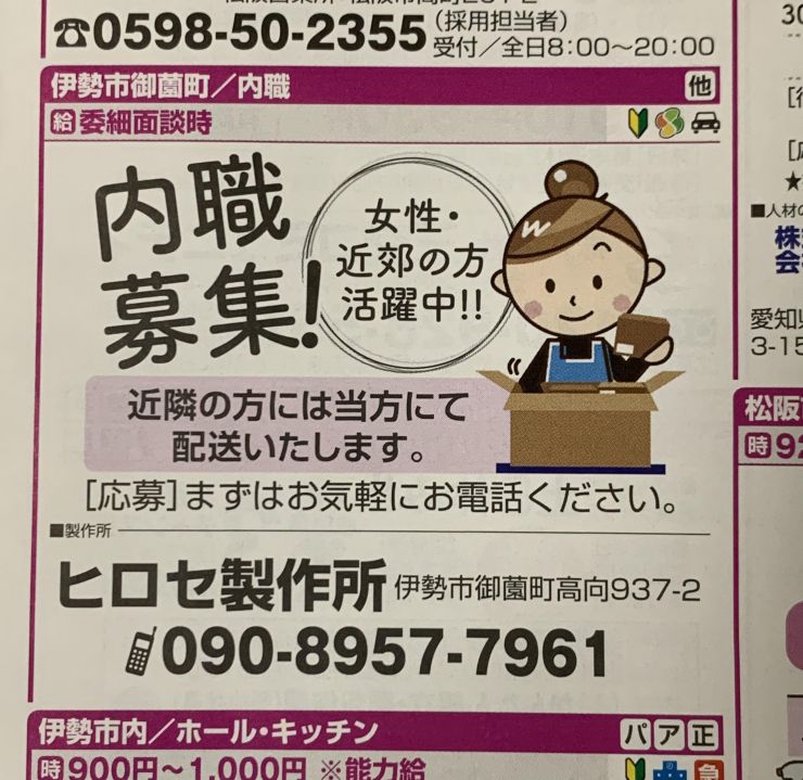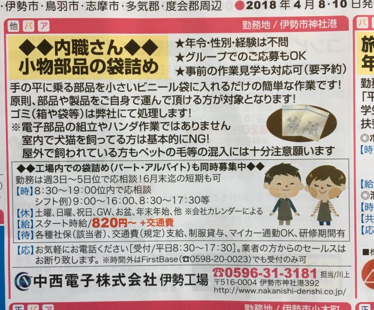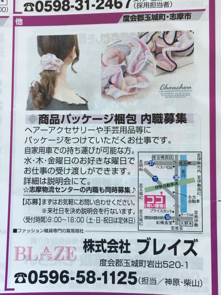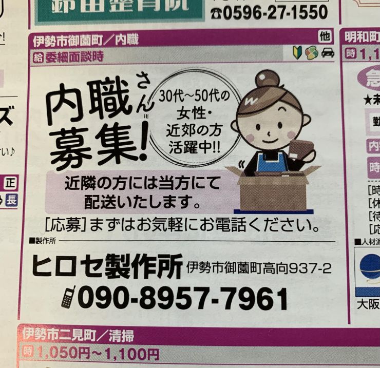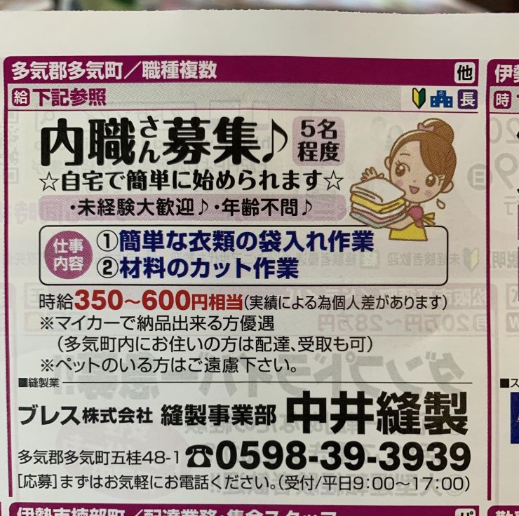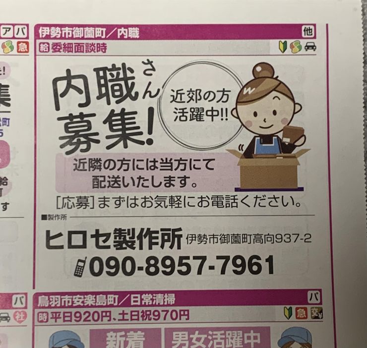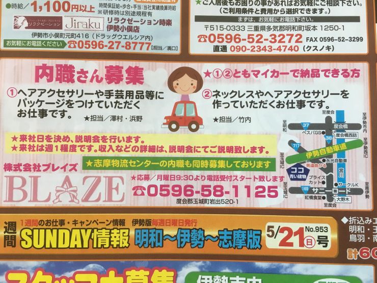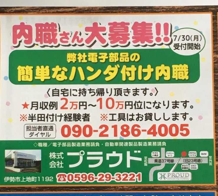 ユーザから投稿してもらった伊勢市の内職チラシ情報を公開しています。