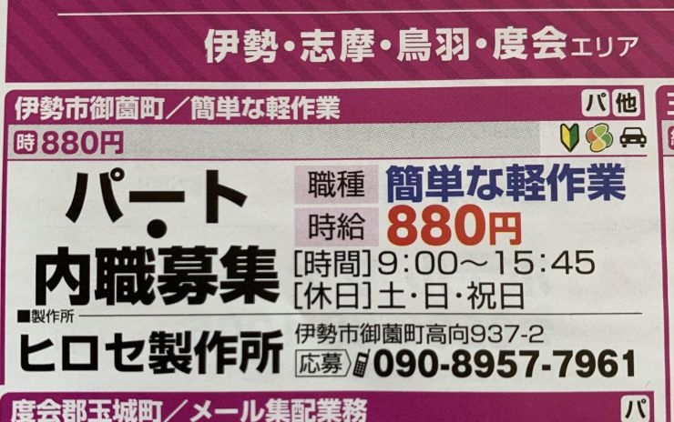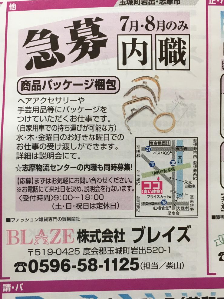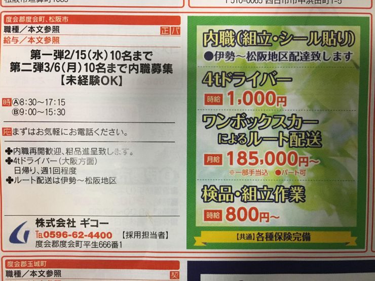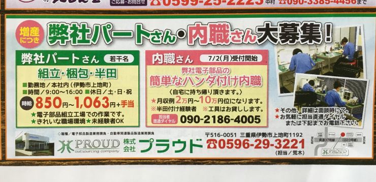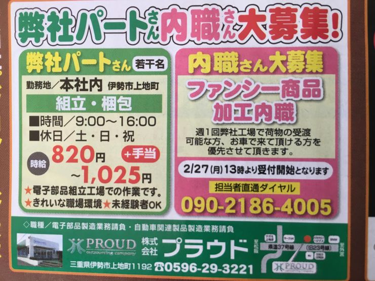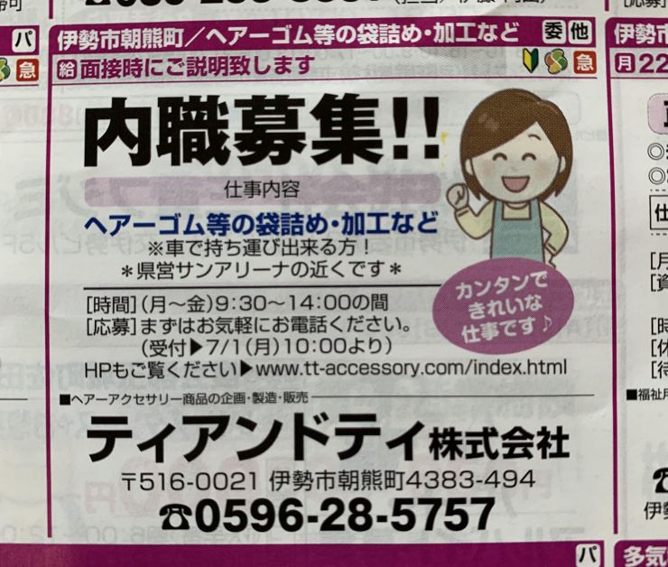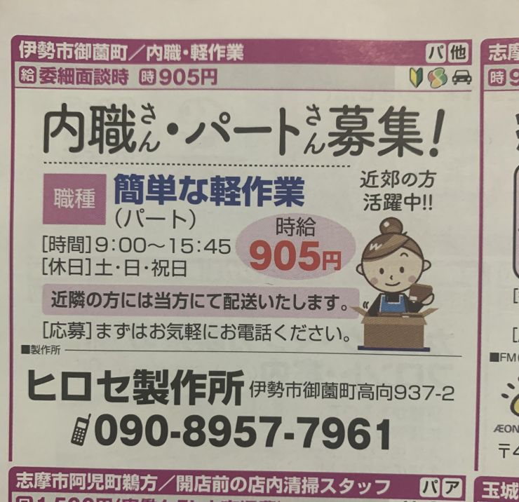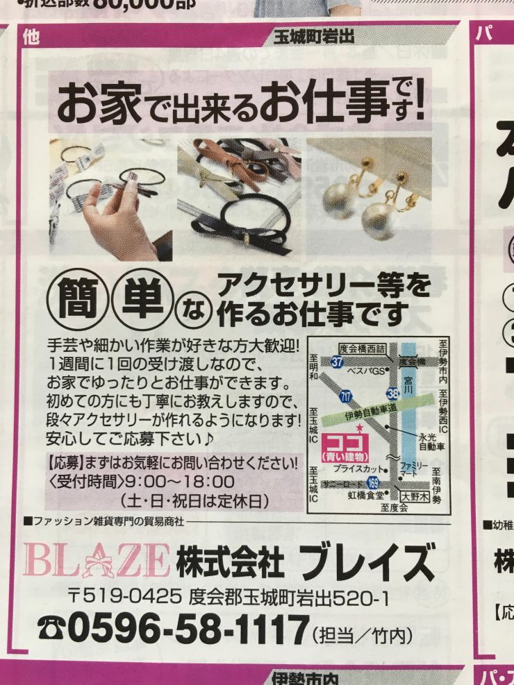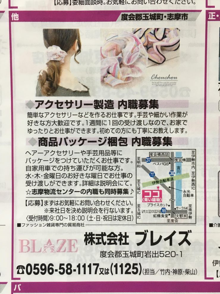 ユーザから投稿してもらった伊勢市の内職チラシ情報を公開しています。
