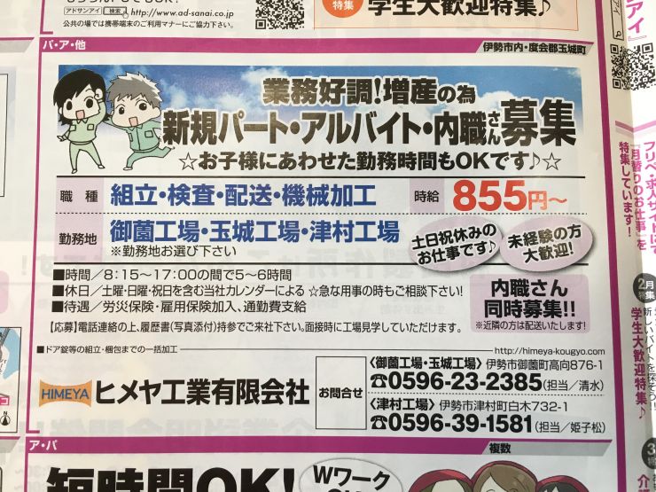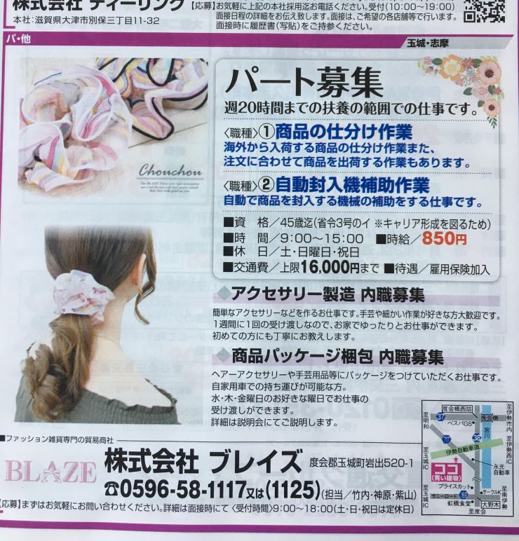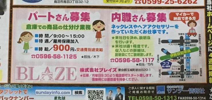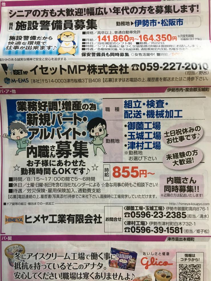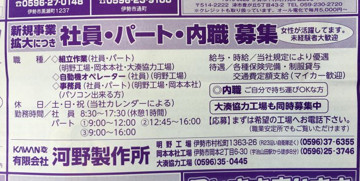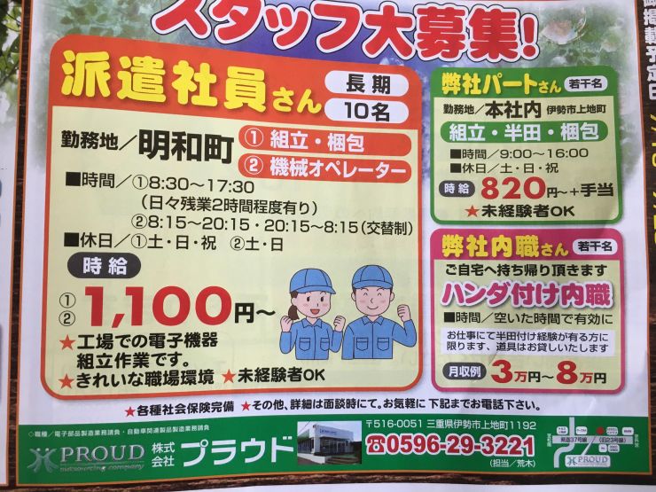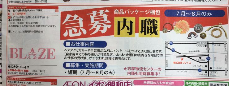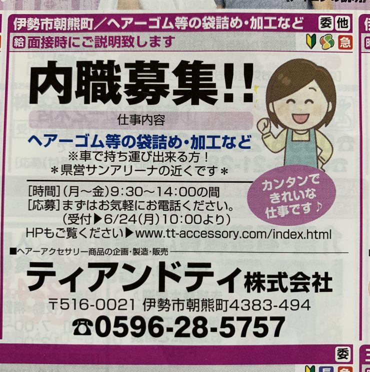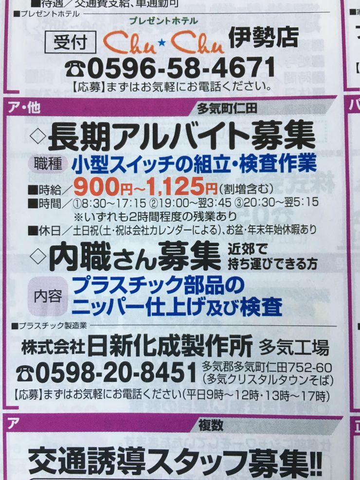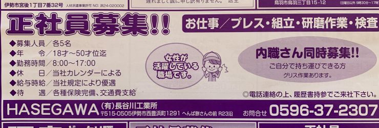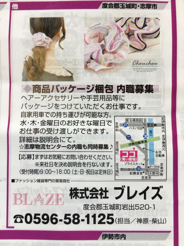 ユーザから投稿してもらった伊勢市の内職チラシ情報を公開しています。