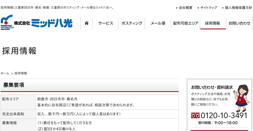 公式サイトへ「株式会社 ミッド八光」の内職について、ホームページの記載内容から、オススメできそうか(安心できそうか)を在宅ワークガイド・スタッフが独自にチェックしました。(2016年9月27日チェック)