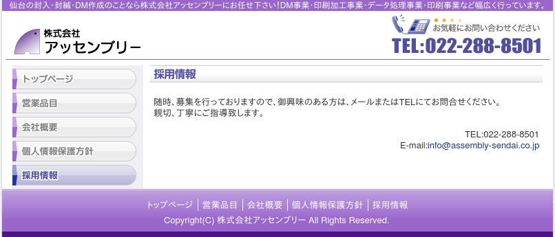 公式サイトへ「株式会社アッセンブリ」の内職について、ホームページの記載内容から、オススメできそうか(安心できそうか)を在宅ワークガイド・スタッフが独自にチェックしました。(2016年1月16日チェック)