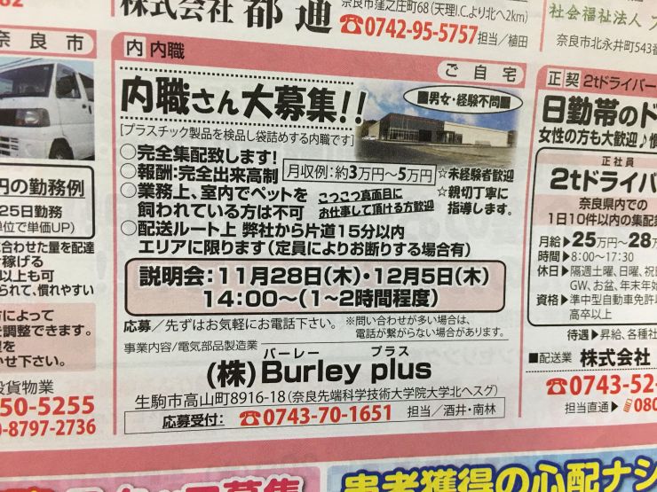 ユーザから投稿してもらった生駒市の内職チラシ情報を公開しています。