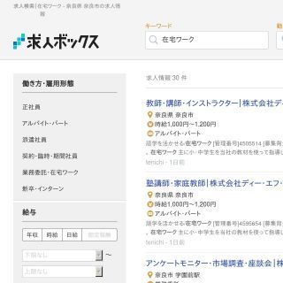 求人サイトの情報をまとめて検索できるサイトです。奈良市では「企業のPR情報の入力」、「メール対応」、「オンライン英会話講師」などの在宅ワークがあります。やりがいのありそうな職種が多く出てくるサイトで、他にはない職種が載っていることがあるのでとても参考になります。距離や年収、雇用形態で絞り込みが出来るので、自分の探しやすいように条件指定をしてみて下さい。応募がそれぞれのサイトからになり、ひと手間ありますがそれを上回る魅力のあるサイトです。