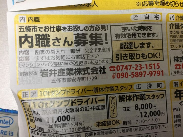 ユーザから投稿してもらった大淀町の内職チラシ情報を公開しています。