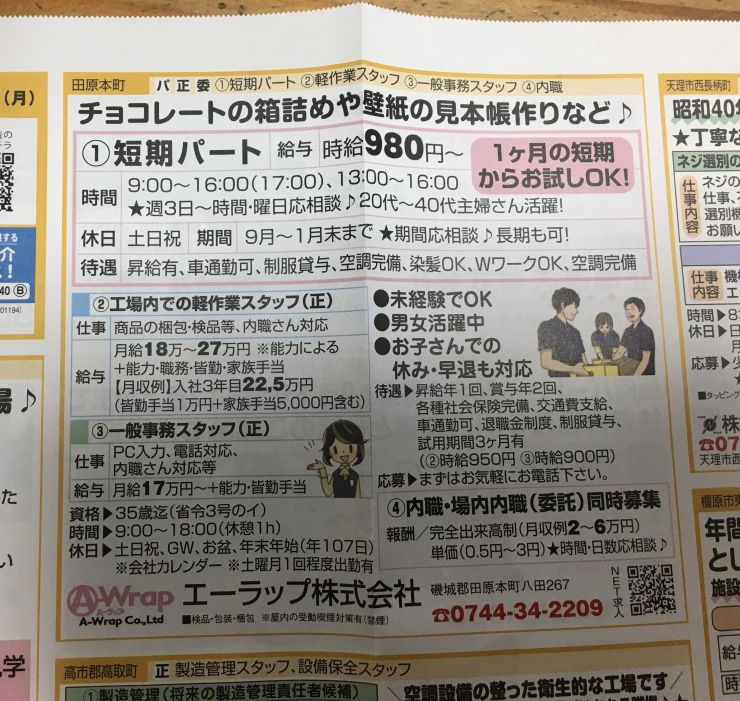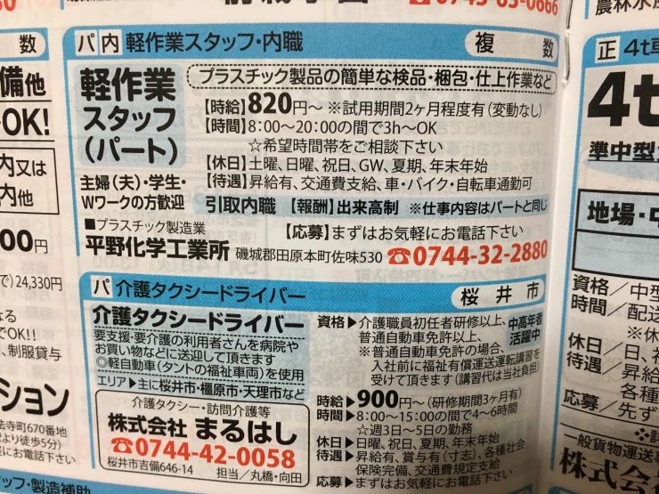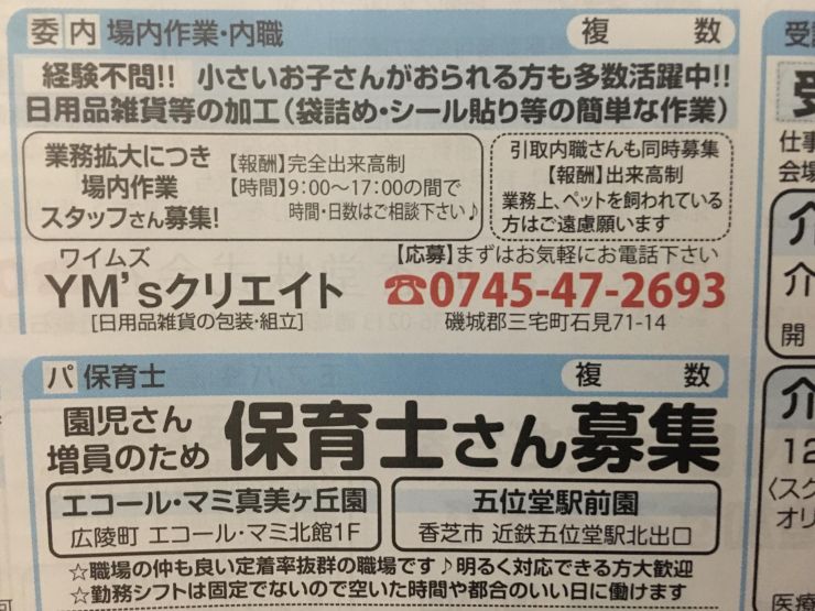 ユーザから投稿してもらった田原本町の内職チラシ情報を公開しています。